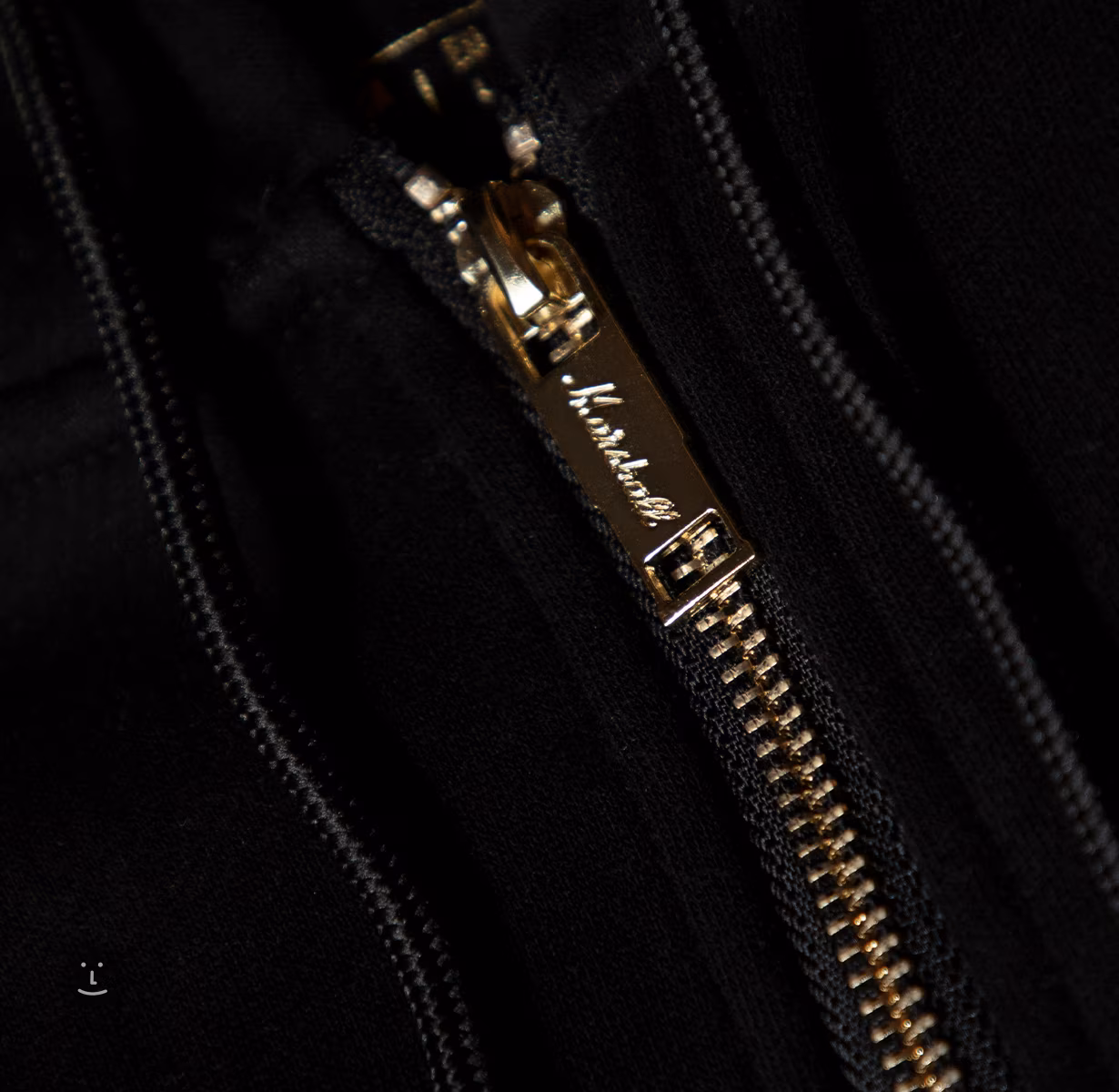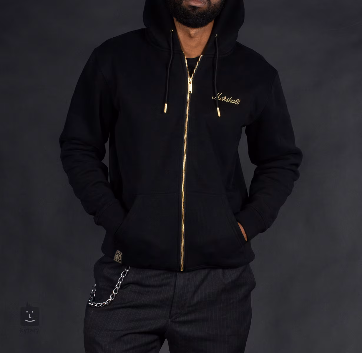 Tato mikina je vybavena kvalitním zipem, vyšívaným logem a speciální nášivkou „60th anniversary.“ Stylová kombinace černé barvy se zlatými detaily pak připomíná ikonický vzhled produktů Marshall. Mikina je vyrobena z odolné a pohodlné kombinace bavlny a polyesteru.