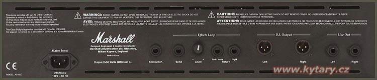 Na zadním panelu pak naleznete vstup a výstup stereo efektové smyčky s možností nastavení úrovně, stereo Line-Out a stereo D.I. Out.