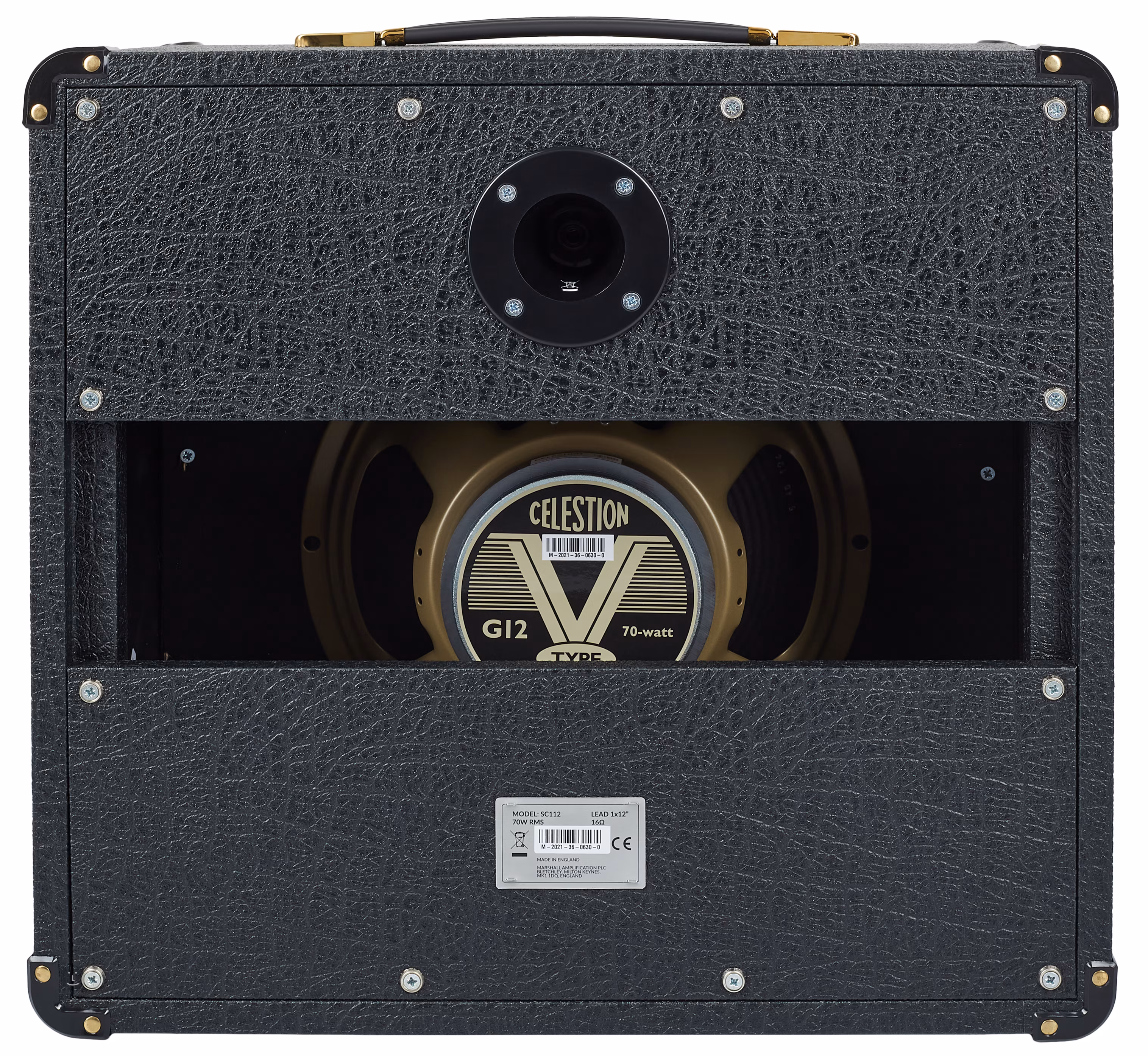 Kytarový reprobox Marshall SC112 s jedním dvanáctipalcovým reproduktorem Celestion V-type a výkonem 70 wattů představuje ideální doplněk k zesilovači Marshall SC20H, kombu SC20C a obecně k moderněji laděným zesilovačům s mírnějším výkonem, kterým vdechne ryzí Marshall hard a heavy tón 80. let.