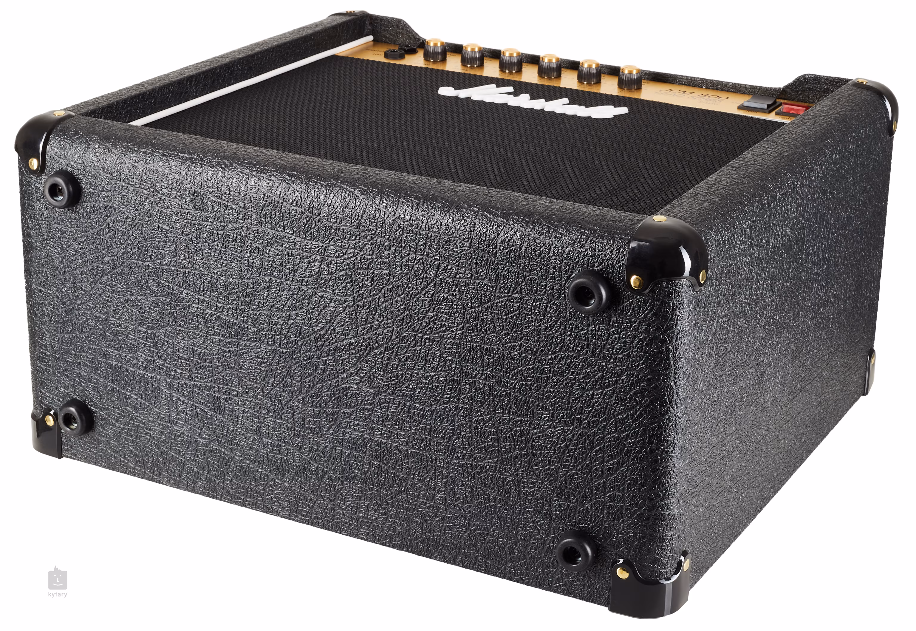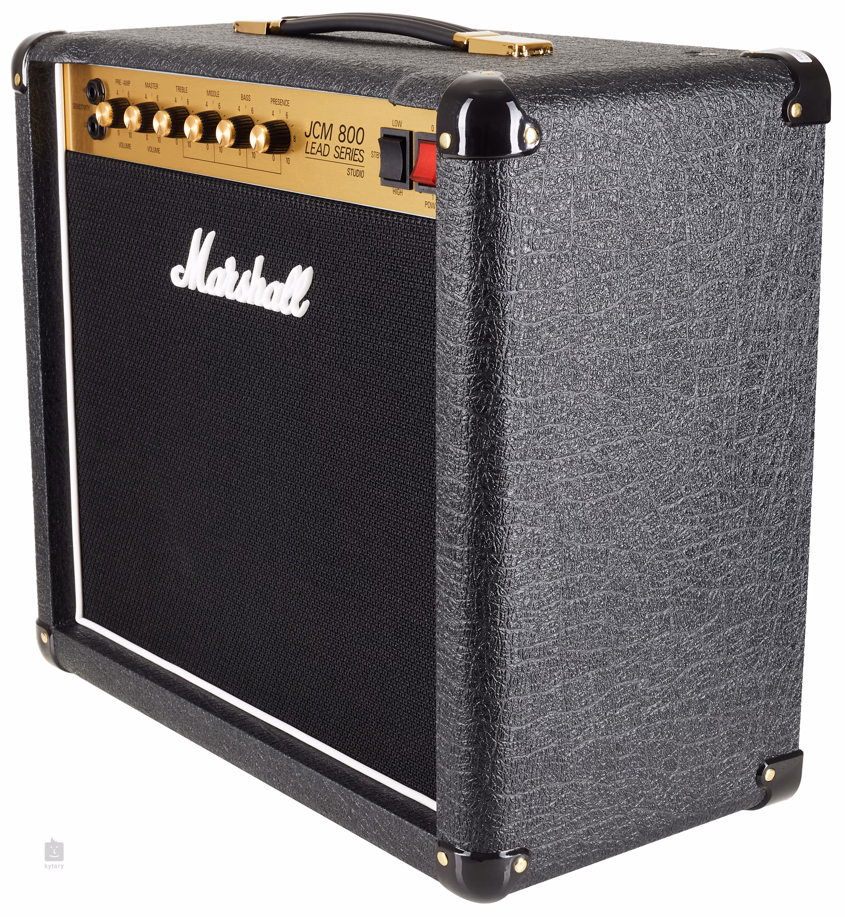 Celolampové kytarové kombo Marshall SC20C z řady Studio je zmenšenou verzí slavného aparátu Marshall JCM800 2203, jehož zvuk definoval podobu hardrockové a metalové hudby 80. let minulého století. Toto v UK ručně vyrobené kombo nabízí autentický zvuk „osmikila“ a stejně jednoduché ovládací prvky v podobě třípásmového ekvalizéru a potenciometrů Presence, Preamp Volume a Master Volume. Zachovány zůstaly i dva nástrojové vstupy (High/Low Sensitivity), kdy, buďme upřímní, naprostou většinu z vás bude zajímat pouze konektor High, protože právě skrze něj vede cesta k ikonickému hi-gain zvuku. Klasické prvky doplňuje praktická funkce redukce výkonu (20/5 wattů), takže si budete moci užívat ryzí Marshall sound i při nižším výkonu zesilovače.