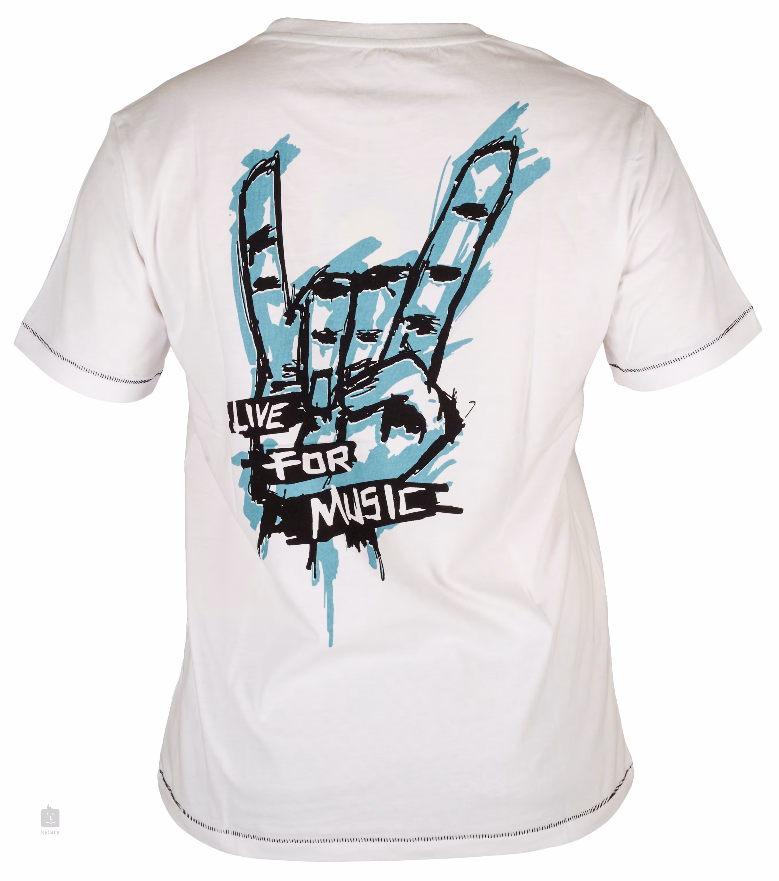 Pánské tričko Marshall s krátkým rukávem, logem Marshall na přední straně a rockovým symbolem, tzv. „paroháčem“, na zádech. Jednoduše Rock It! Velikost M.