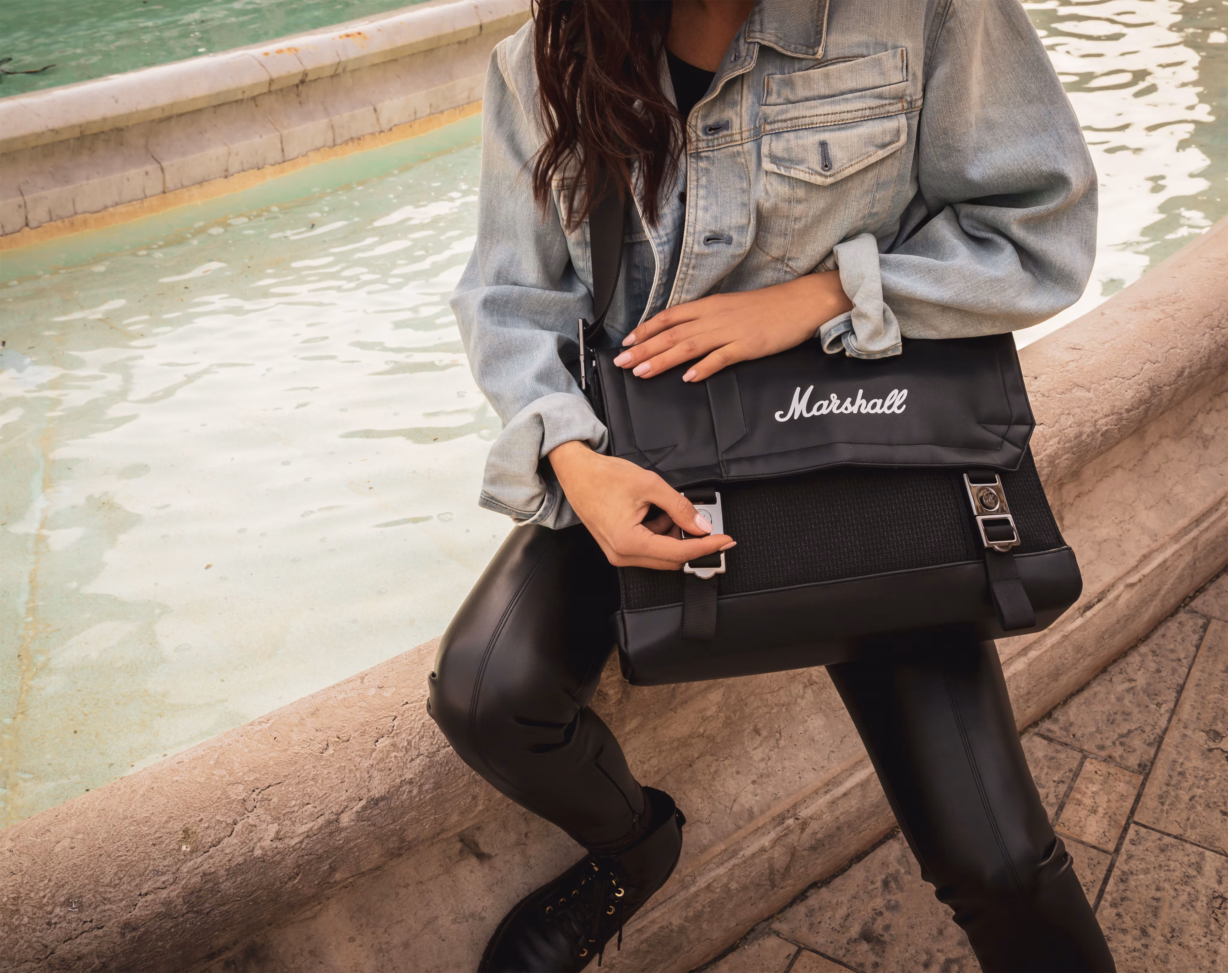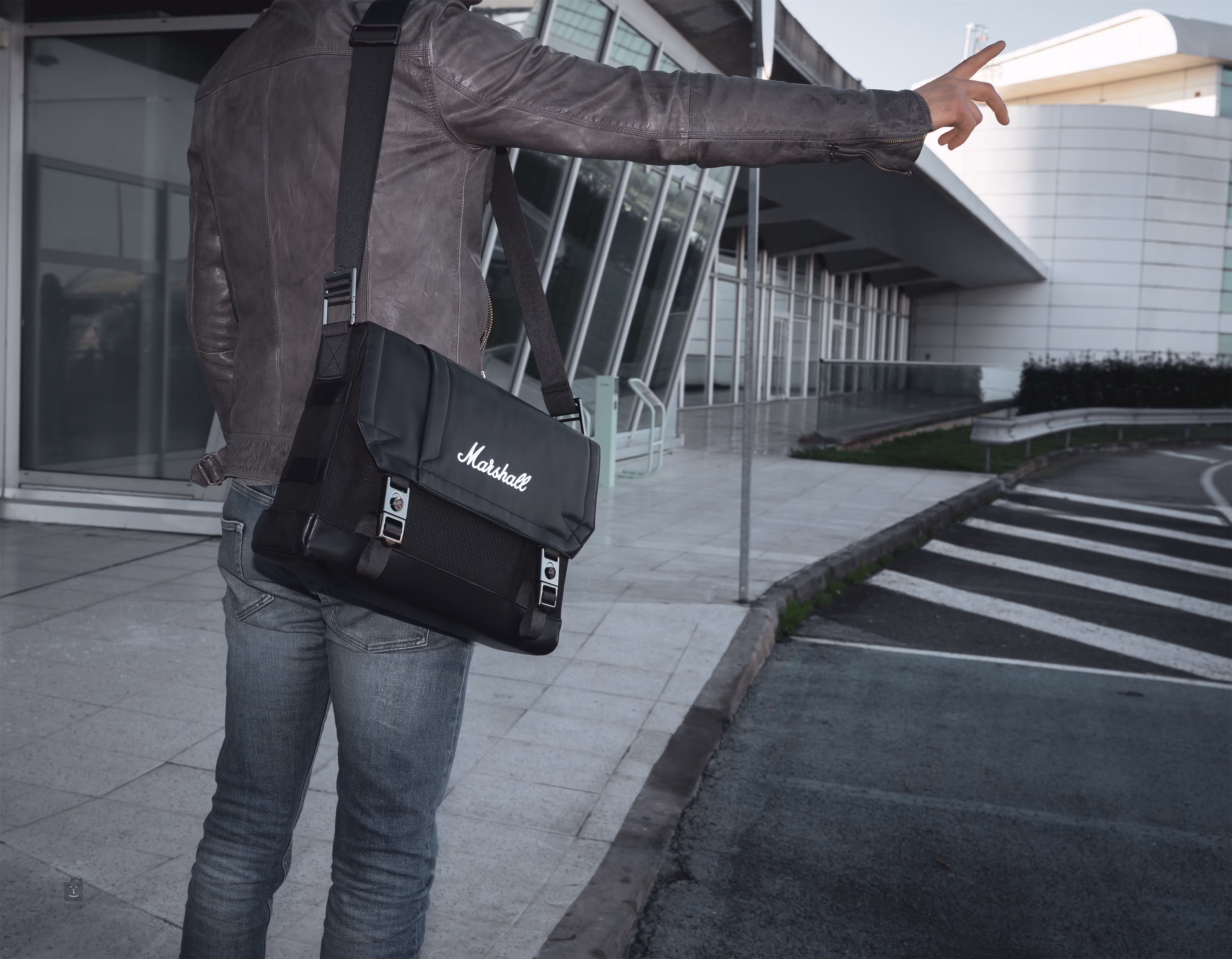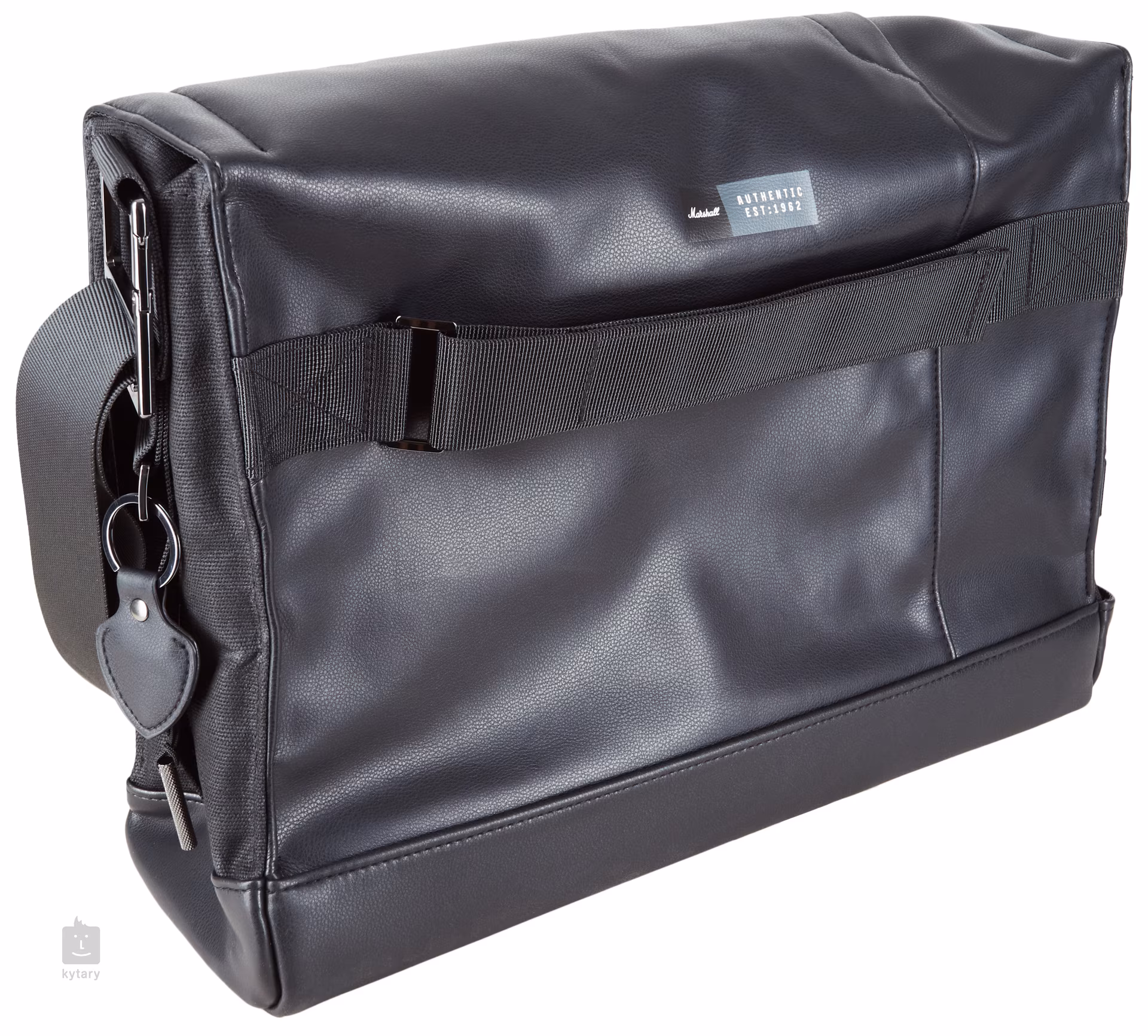 Stylová taška od legendární firmy Marshall. Je vyrobena z kombinace odolné nepromokavé textilie a veganské kůže. Vnitřní strana je vybavena prostornými přehrádkami a oddělením s plyšovou textilií pro notebook či tablet. Ramenní popruh je možné odepínat a pro maximální pohodlí na něm najdete polstrovaný polštářek. Do tašky je možné uložit tablet či notebook do velikosti 15“.
