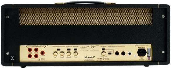 Při pohledu zadní panel konečně zjistíte, že před sebou nemáte právě originální Plexi. Naleznete zde totiž hned za konektory pro připojení reproboxů sekce ovládání zabudovaného Boosteru (potenciometry Gain a Volume), Noise-Gate (Threshold) a Reverbu (Level). Též je zde efektová smyčka a ovladač zabudované výkonové brzdy, kterou lze stáhnout výkon až na 0,01 Wattu. Je zde i přepínač na 50 W.