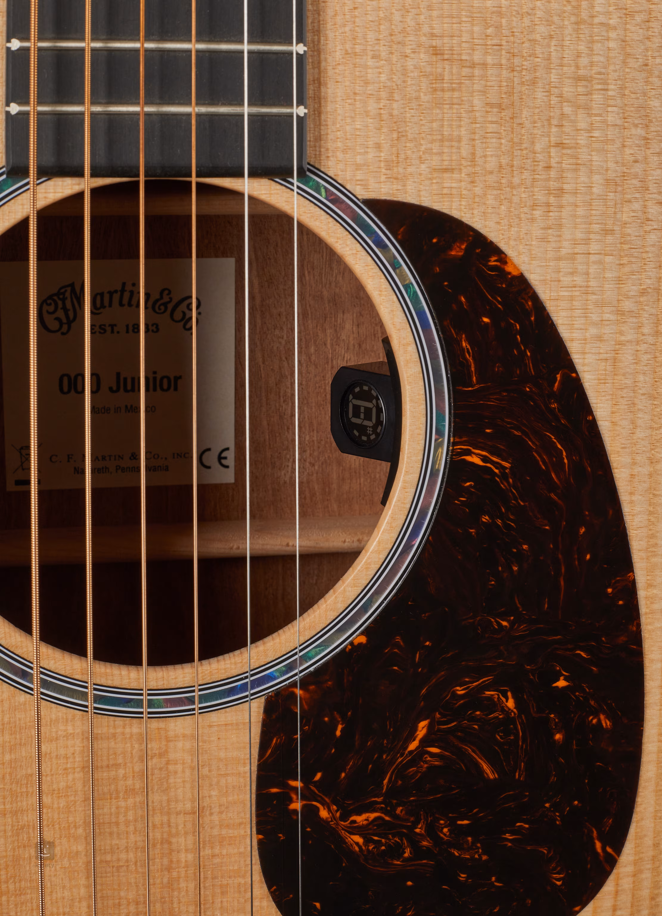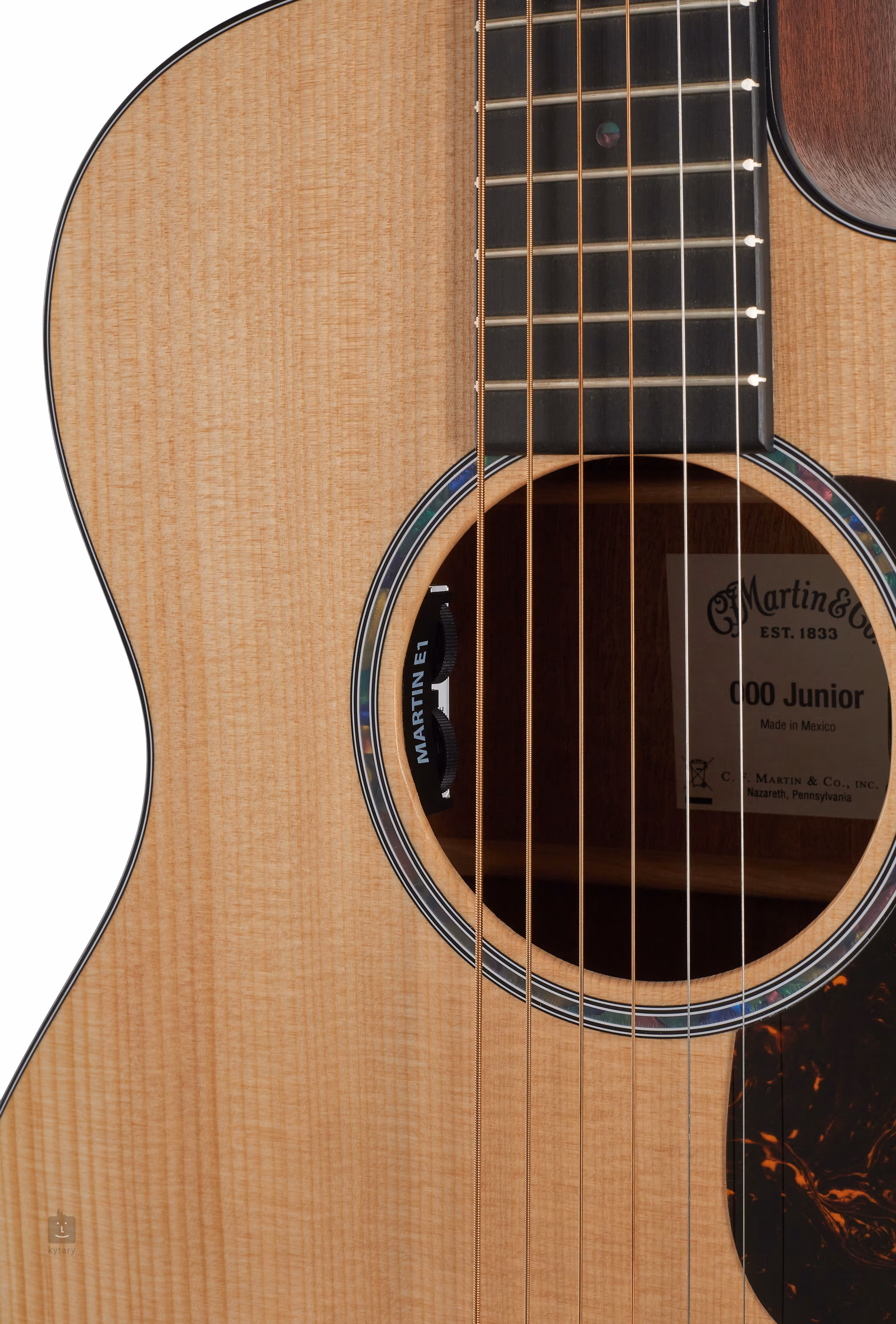 Elektroakustická kytara Martin 000C Jr-E Satin nabízí herní pohodlí středně velkého těla „trojnulek“ a vyvážený zvuk, který oceníte při hře prstovou technikou i trsátkem. Přední deska kytary je zhotovena z masivu smrku, zadní deska a luby jsou vyrobeny z masivu sapele, které je vlastnostmi a zvukem velmi podobné mahagonu. Dobré akustické vlastnosti kytary zvýrazňuje snížené žebrování typu X (Scalloped X-Brace) přední desky.