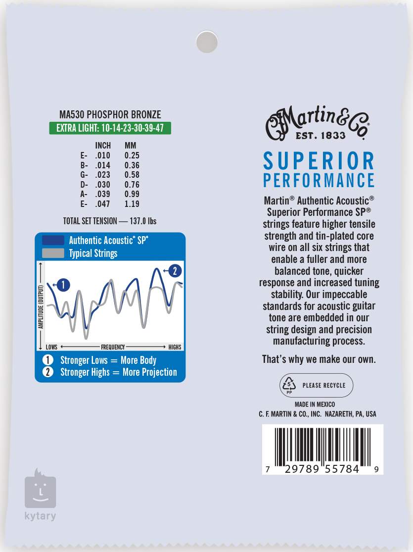 Struny Martin Authentic SP jsou navrženy s ohledem na potřeby aktivních hudebníků, musí tedy obstát v náročném prostředí neustálých koncertů a zkoušek. Jejich základem je ocelové jádro s cínovou vrstvou pro zvýšenou odolnost vůči korozi, zatímco perfektní zvukové vlastnosti zaručuje ovinutí ze slitiny fosforbronz. Výsledkem je vřelý, zakulacený zvuk, který vás zaručeně pohladí na duši a dodá vašemu hraní teplejší charakter. Kromě vysoké odolnosti a skvělého zvuku se můžete spolehnout také na výbornou hratelnost a stoprocentní stabilitu ladění ve všech situacích.