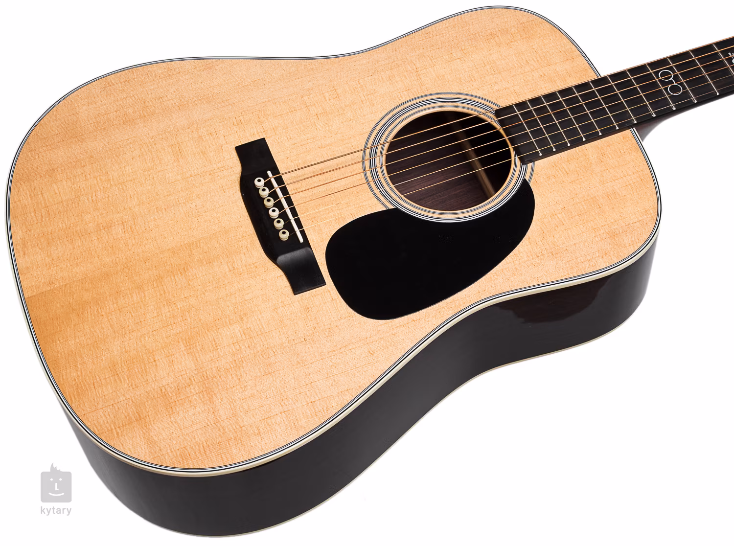Kompenzované kostěné sedlo usazené na ebenové kobylce poskytuje strunám, spolu s kostěným nultým pražcem, skvělou rezonanci a sustain. Černý pickguard chrání lak kytary před škrábanci způsobenými hrou trsátkem. Výsledný vzhled nástroje podtrhují chromované ladící mechaniky a lemovka z imitace slonoviny.