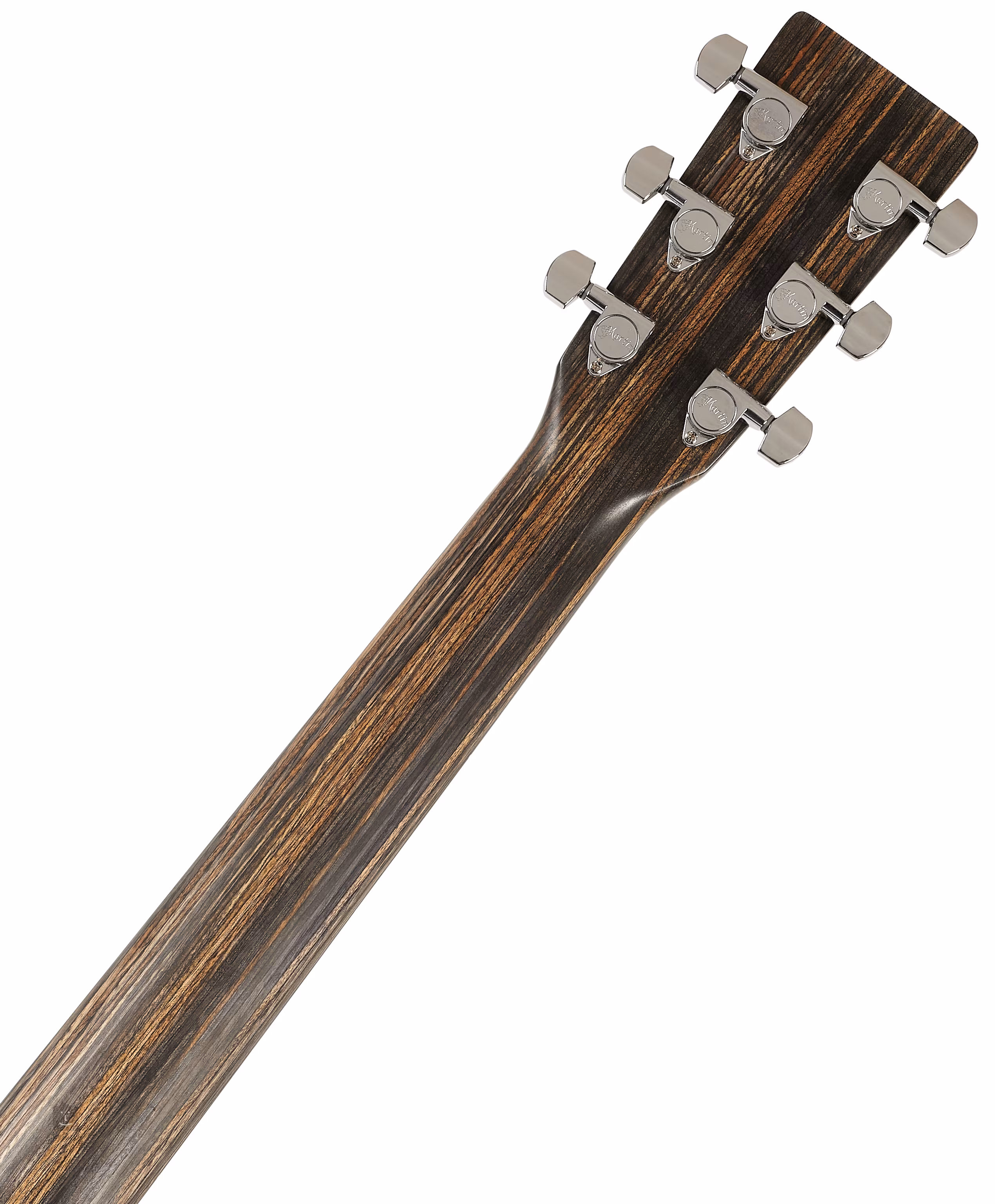 Kompenzované sedlo z kompozitního materiálu TUSQ usazené na kobylce z materiálu Richlite poskytuje strunám, spolu s nultým pražcem z umělého kamene (Corian), skvělou rezonanci a sustain. Strohý design zpestřuje jednoduchá rozeta se vzorem rybí kosti. Kytara je dodávána v kvalitním obalu (Soft Shell), díky čemu je okamžitě připravena k naložení do kufru auta/dodávky na dlouhé či krátké cesty za vašimi hudebními sny.