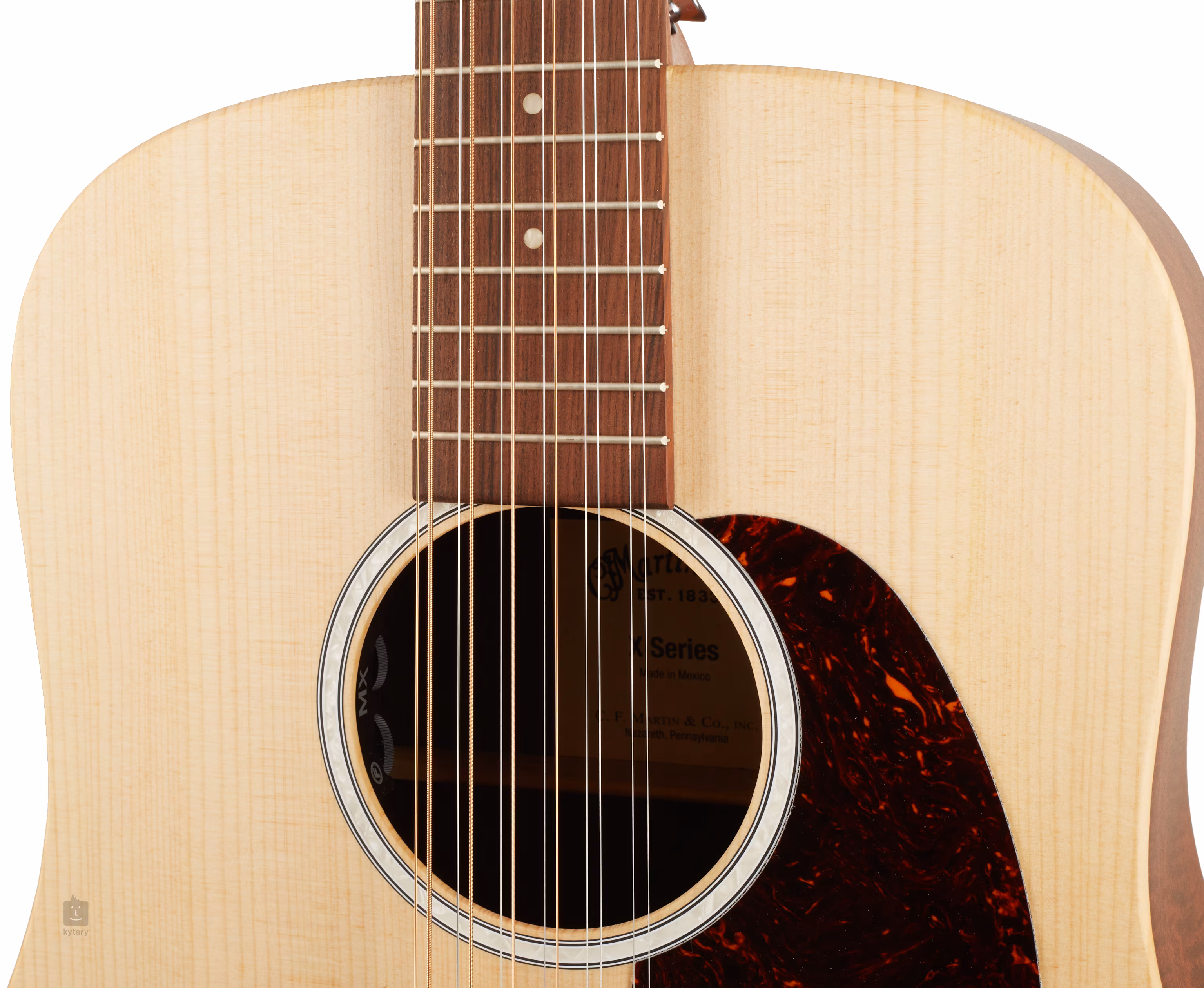 Martin 11DX2E12STRING je dvanáctistrunná elektroakustická kytara s velkým rezonantním tělem typu Dreadnought. Její přední deska je vyrobena z masivu smrku Sitka, zadní deska a luby jsou zhotoveny z moderního materiálu HPL v dekoru figurovaného mahagonu. Tato kombinace materiálů nejen šetří životní prostředí, ale poskytuje nástroji dobré zvukové a herní vlastnosti. Dobré akustické vlastnosti kytary zvýrazňuje snížené žebrování typu X (Scalloped X-Brace) přední desky.