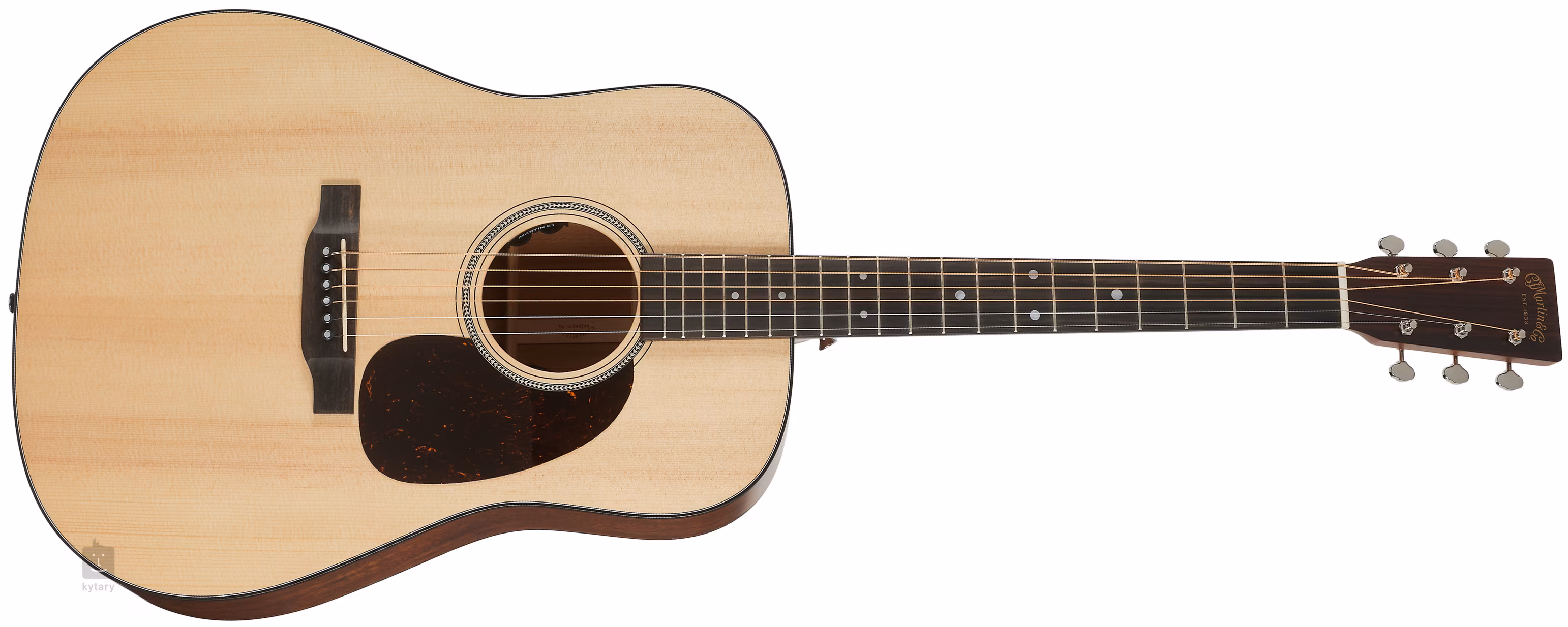 Řada 16 Series americké značky Martin nabízí celomasivní akustické kytary, které jsou vyráběny v pensylvánském Nazarethu se stejnou řemeslnou zručností a pečlivostí jako slavnější a dražší modely Standard. Martin D16E-02 je celomasivní elektroakustická kytara typu Dreadnought s mělčím tělem (hloubkou odpovídá „trojnulkám“). Dokáže tak oslovit i hráče, pro které je standardní Dreadnought příliš mohutný. Přední deska kytary je vyrobena z amerického smrku Sitka, zadní deska a luby z afrického mahagonu. Rezonanci přední desky a celkové dobré akustické vlastnosti kytary umocňuje speciální snížené žebrování typu X (Forward-Shifted X-Brace). Ke krku z vybraného dřeva (hardwood) je přilepen ebenový hmatník osazený dvaceti pražci. Orientaci na hmatníku usnadňují perleťové (Mother-of-Pearl) polohové značky a boční bílé tečky. Přesné ladění a dobrý sustain zaručuje uchycení strun přes kompenzované sedlo z materiálu TusQ a nultý pražec z kosti v otevřených mechanikách (Nickel Open Gear) a ebenové kobylce. Stylový vzhled nástroje podtrhuje černá obvodová lemovka těla, rozeta s prstencem se vzorem rybí kosti, palisandrová dýha na hlavici a pickguard z imitace želvoviny, který zároveň chrání lak před poškrábáním. Možnost ozvučení nabízí elektronika Martin E1 v ozvučném otvoru s ovladači hlasitosti, tónové clony a push/push přepínači integrované chromatické ladičky a funkce Phase. Kytara je dodávána v kvalitním měkkém pouzdru (Soft Shell Case), díky čemu je okamžitě připravena k naložení do kufru auta/dodávky na dlouhé či krátké cesty za vašimi hudebními sny. Americká firma Martin, založená v roce 1833, patří zcela po zásluze k největším a nejvíce respektovaným pojmům na poli strunných nástrojů. Po celá desetiletí patří k předním inovátorům konstrukčních řešení a technologických postupů při výrobě kytar. Používat pouze minulý čas by však byla velká mýlka; nástroje s logem Martin patří i v současnosti k zárukám té nejvyšší kvality v řemeslném zpracování a zvuku. Jejich současné produkty navíc využívají „eco-friendly“ komponenty z obnovitelných zdrojů a kompozitních materiálů.