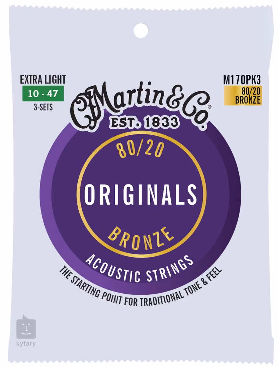 Tyto struny pro akustickou kytaru poskytují bohaté basy a zvučné, křišťálově čisté výšky, které krásně podtrhnou přirozený zvuk vašeho nástroje. Jsou vhodné pro extrémně širokou škálu stylů a technik – od rocku přes folk až po country, od hry trsátkem po čistě fingerstylovou hru. Tyto struny vaši hru zkrátka pozvednou na novou úroveň, ať už hrajete cokoliv. Základ tvoří standardní šestihranné ocelové jádro vinuté vysoce kvalitní bronzovou slitinou (80/20), která kromě skvělého zvuku a pocitu ze hry poskytne také dlouhou životnost. Pokud hledáte kvalitní a všestranné struny, Martin Originals by určitě neměly uniknout vaší pozornosti.