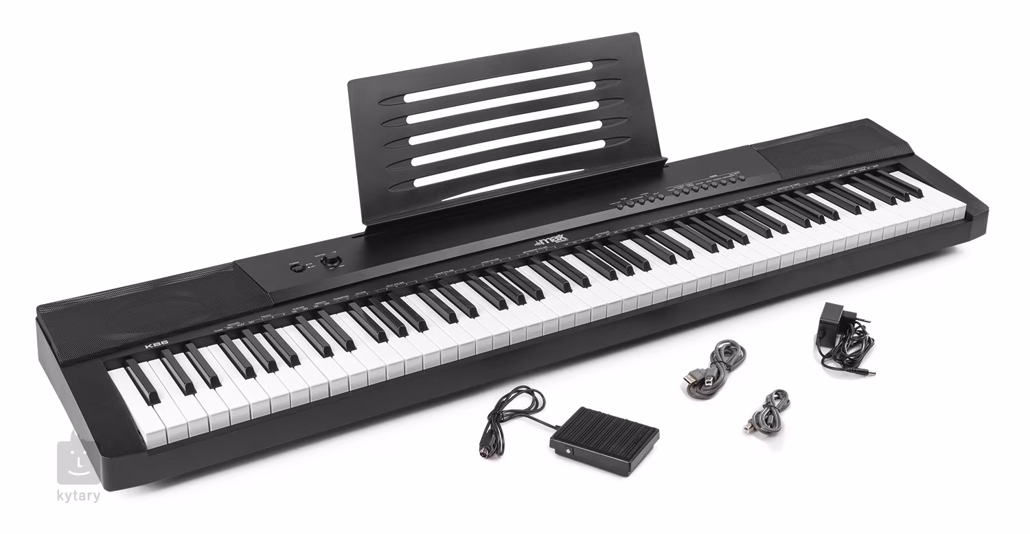 KB6 disponují 88 citlivými klávesami s realistickým zvukem a vyvážením jako u piana. Abyste slyšeli svoje hráčské pokroky, jistě oceníte i funkci Record, kdy zaznamenáte svoje nahrávky přímo do interní paměti kláves. Klávesy také obsahují řadu dalších funkcí, jako např. 140 zvuků, možnost rozdělení klaviatury na dvě stejné zóny, USB porty, MIDI pro připojení do PC a mikrofonní vstup. Vše si nastavíte prostřednictvím intuitivního ovládacího panelu. Součástí balení je napájecí adaptér, notový stojan, USB kabel a Sustain pedál.