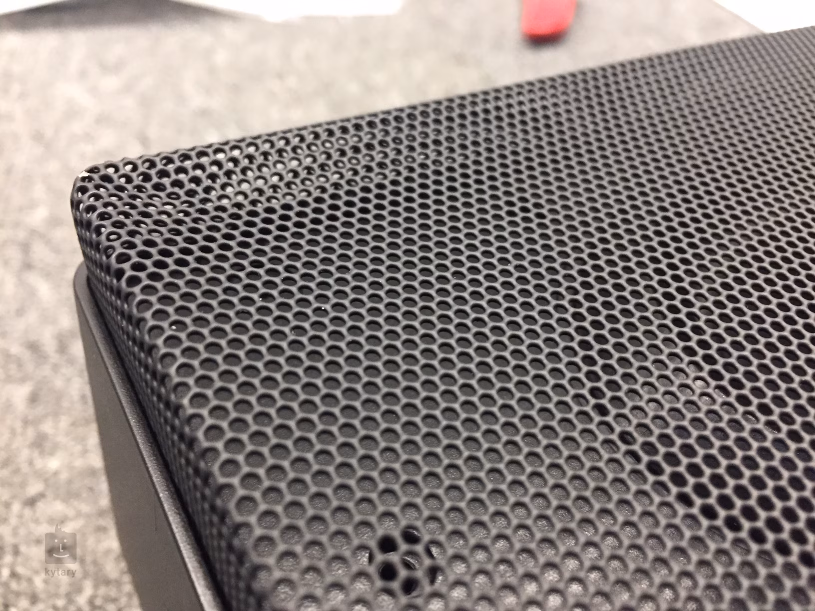 Prohnutá mřížka u levého reproduktoru (viz foto). Zboží jeví drobné známky používání, povrchové škrábance. Jinak v pořádku a plně funkční.