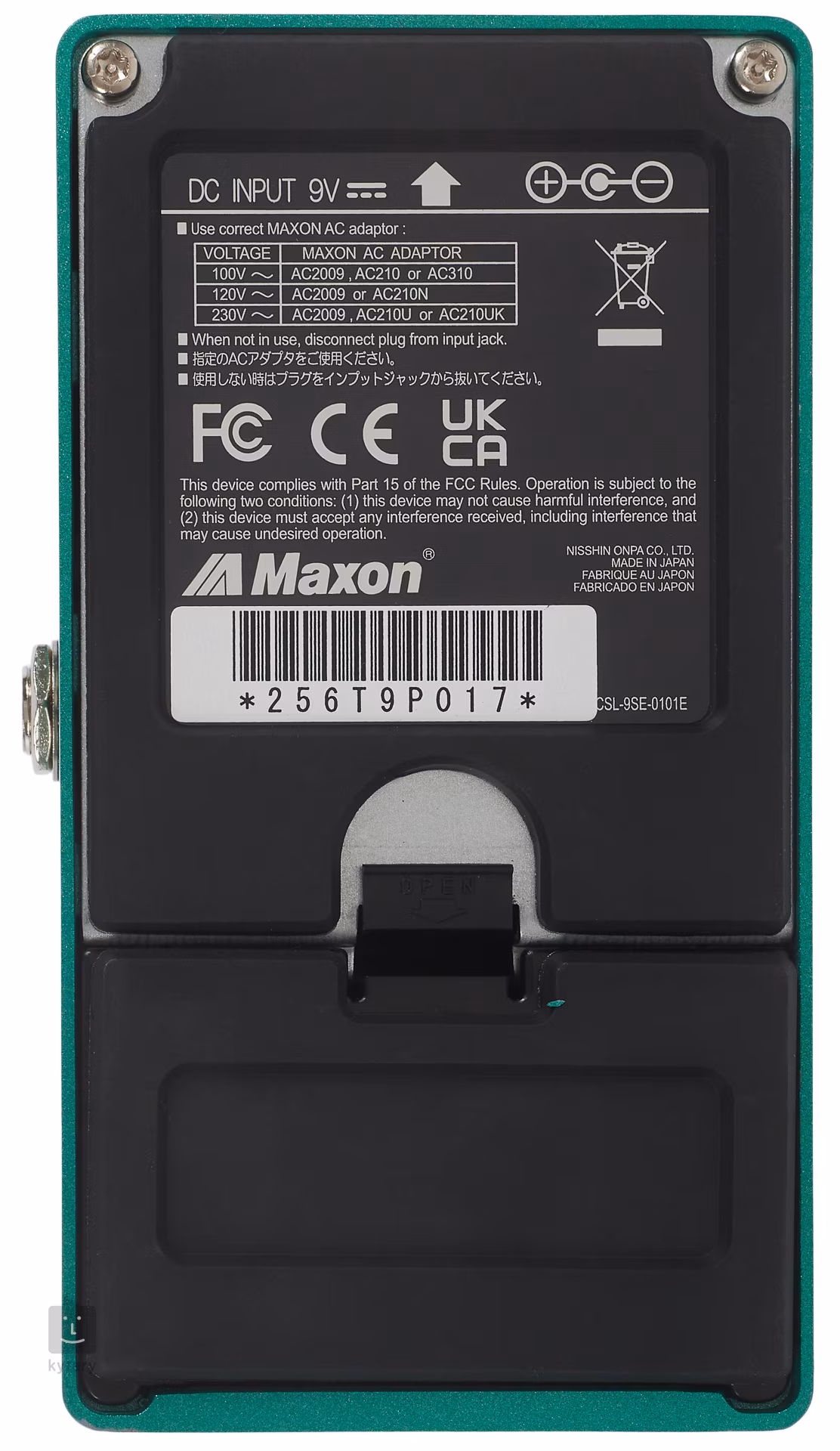 Krabička zapojena jako true bypass. K napájení je zapotřebí 9V baterie nebo 9V adaptér.