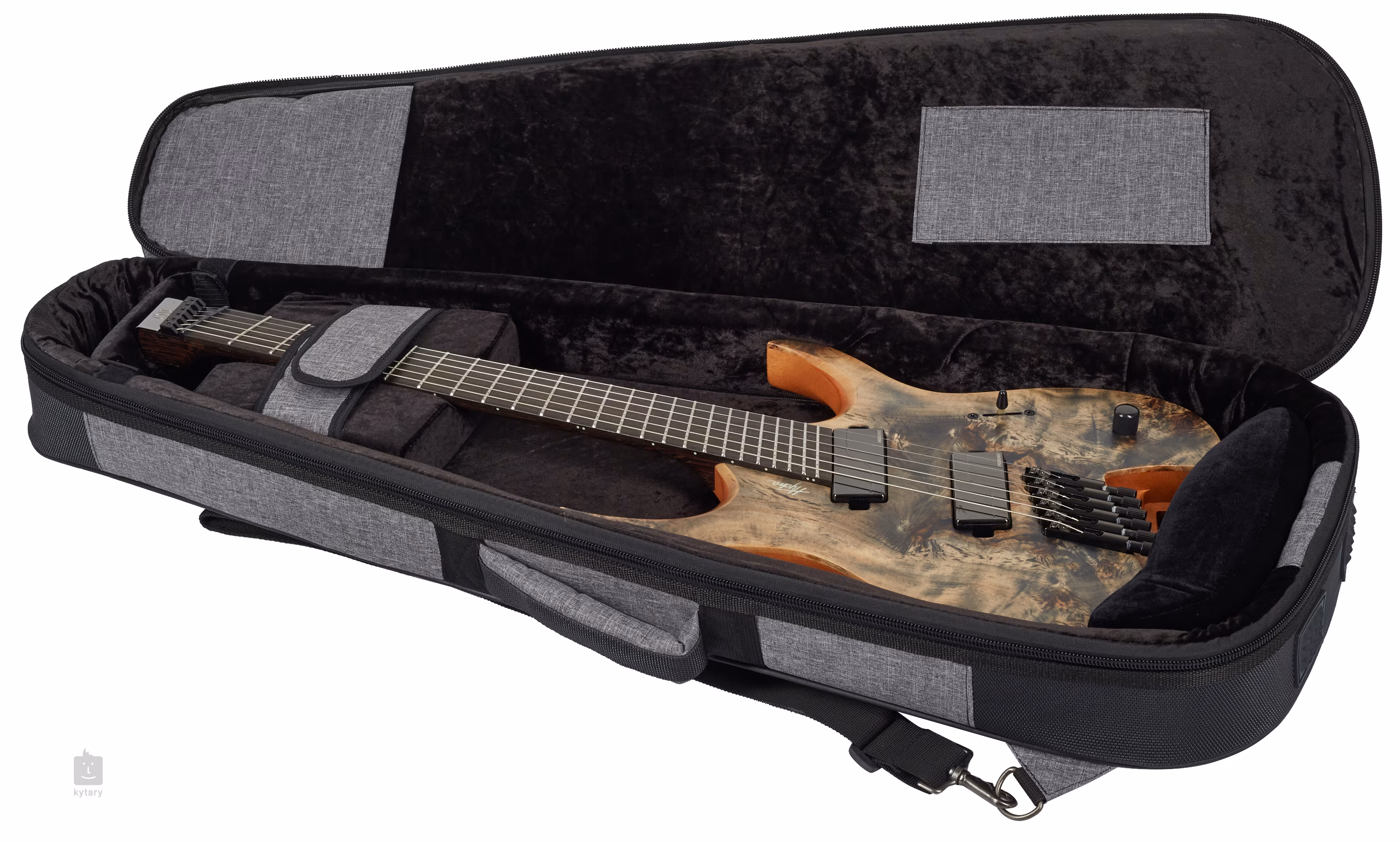 Struny jsou uchyceny v kobylce (ABM Headless Guitar Single Saddle Bridge) s integrovanými ladícími mechanikami. Kytara je dodávána v luxusním polstrovaném obalu (gig bag) spolu s bezpečnostími zámky Schaller (Schaller Security Lock).