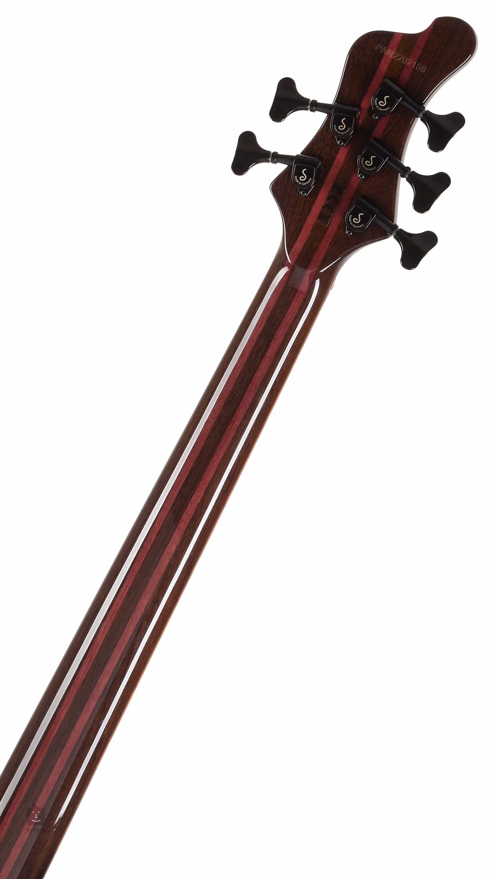 Ergonomicky tvarované tělo této baskytary je vyrobeno z bahenního jasanu, doplněného o prostřední vrstvu ze dřeva Wenge a javorový top. Průchozí krk je vyroben z kombinace dřev Wenge a Purpleheart, pro maximální stabilitu je pak opatřen dvěma grafitovými výztuhami. Navíc je díky proměnlivé menzuře (34“-37“) také velice ergonomický a poskytuje vyvážené pnutí jednotlivých strun. Pro pohodlnou hru i ve vyšších polohách je pak zadní strana krku ergonomicky tvarovaná. Hmatník je také ze dřeva Wenge a najdete na něm 24 extra jumbo pražců ze slitiny niklu a stříbra, vyrobených firmou Ferd Wagner, nebo ebenový nultý pražec.