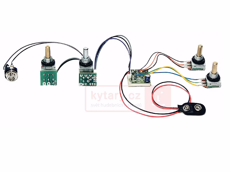 obsahuje: volume, pull/push, balance, bass a treble EQ modul, bateriová přípojka