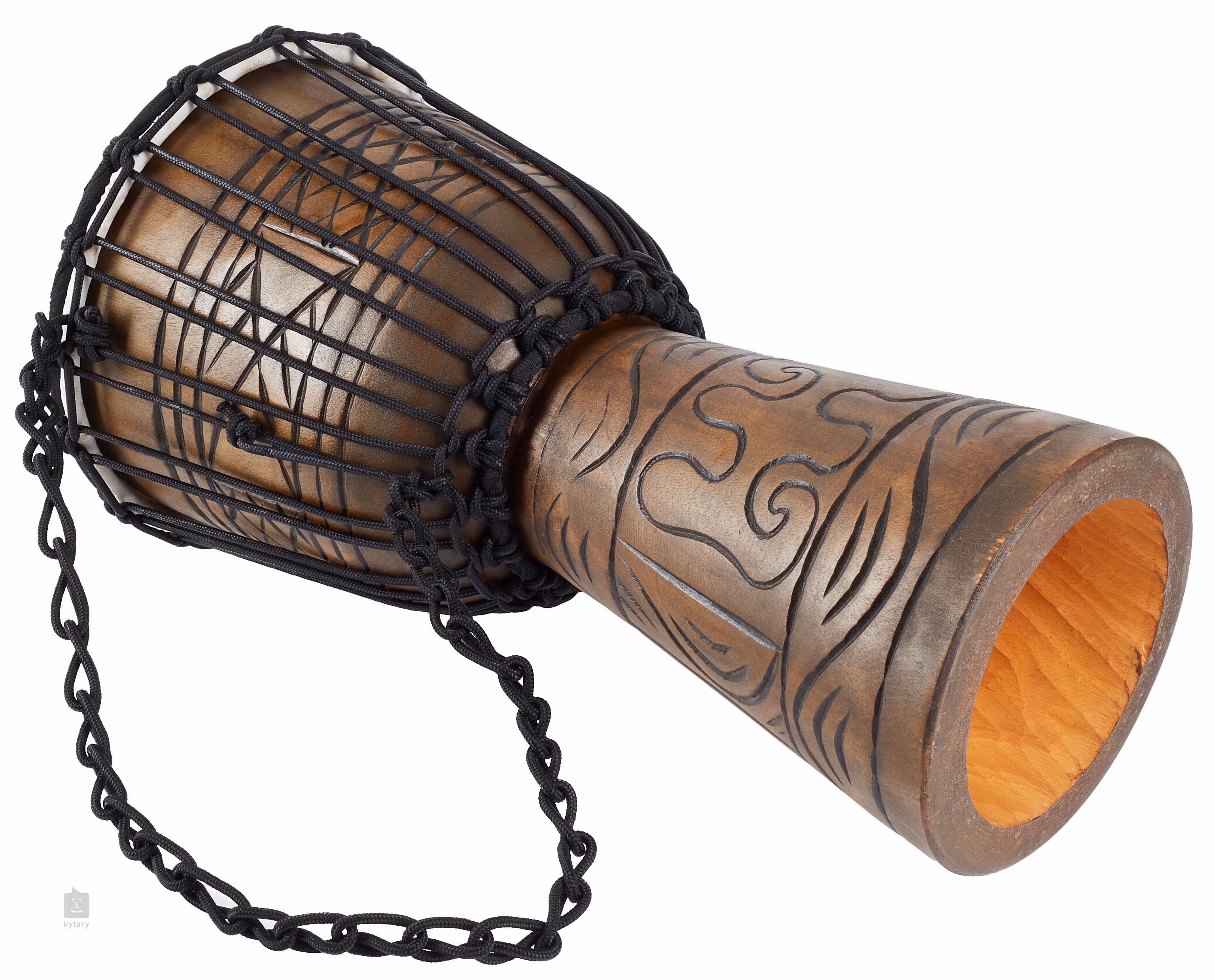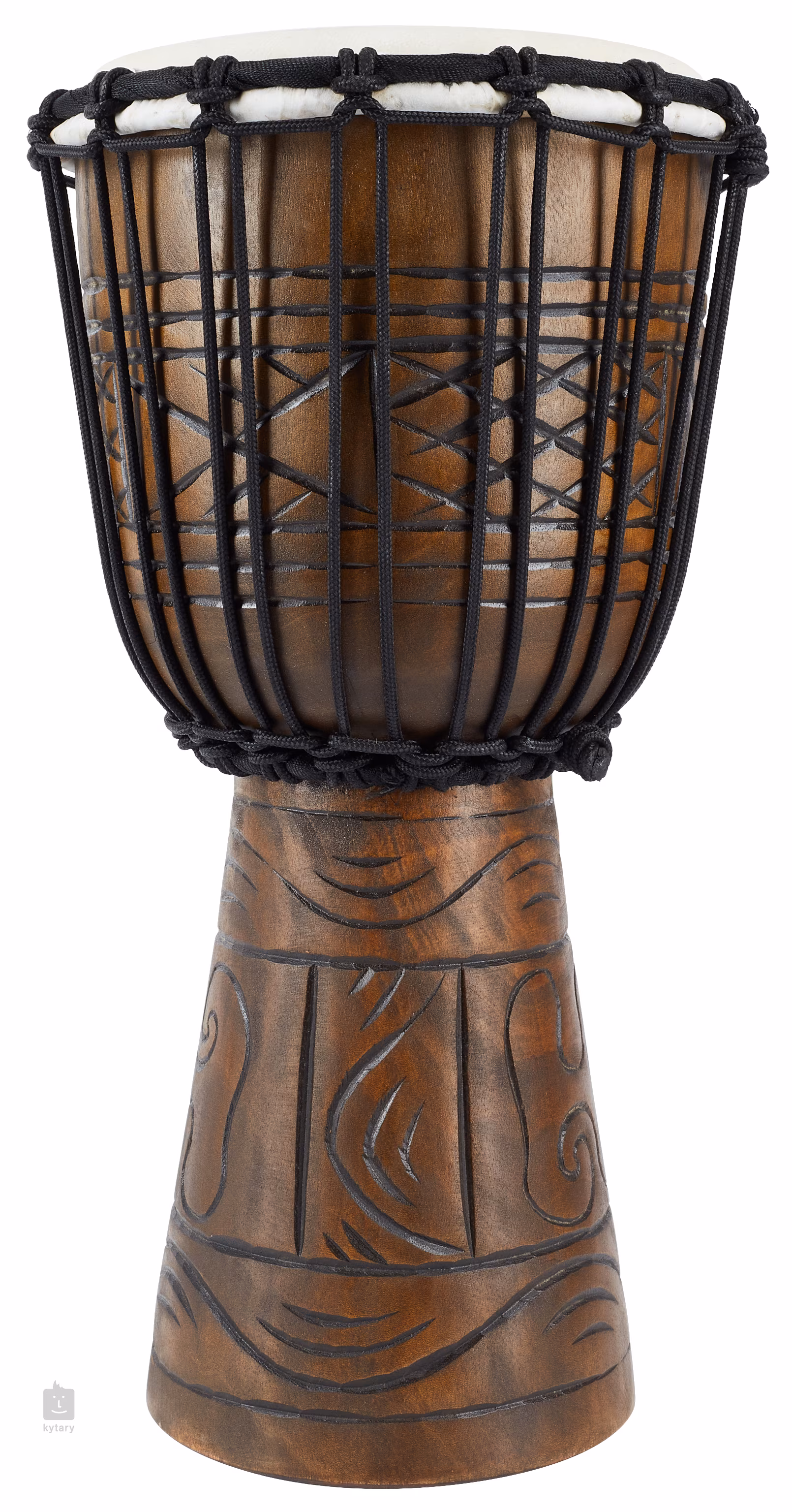 Vyrobeno je z jednoho kusu výběrového dřeva mahagonu, na ozvučnou blána je použita pečlivě vybíraná kozí kůže – zcela ideální materiál pro dosažení vyrovnaného zvuku. Jeho průměr činí 8 palců a výška 15 palců, tvar je zcela tradiční, tudíž můžete očekávat i tradiční zvuk. Nástroj je zdoben ručně vyřezávanými vzory s černým vybarvením, zcela autenticky tedy připomíná nástroj, který mohl být vyroben před mnoha staletími.