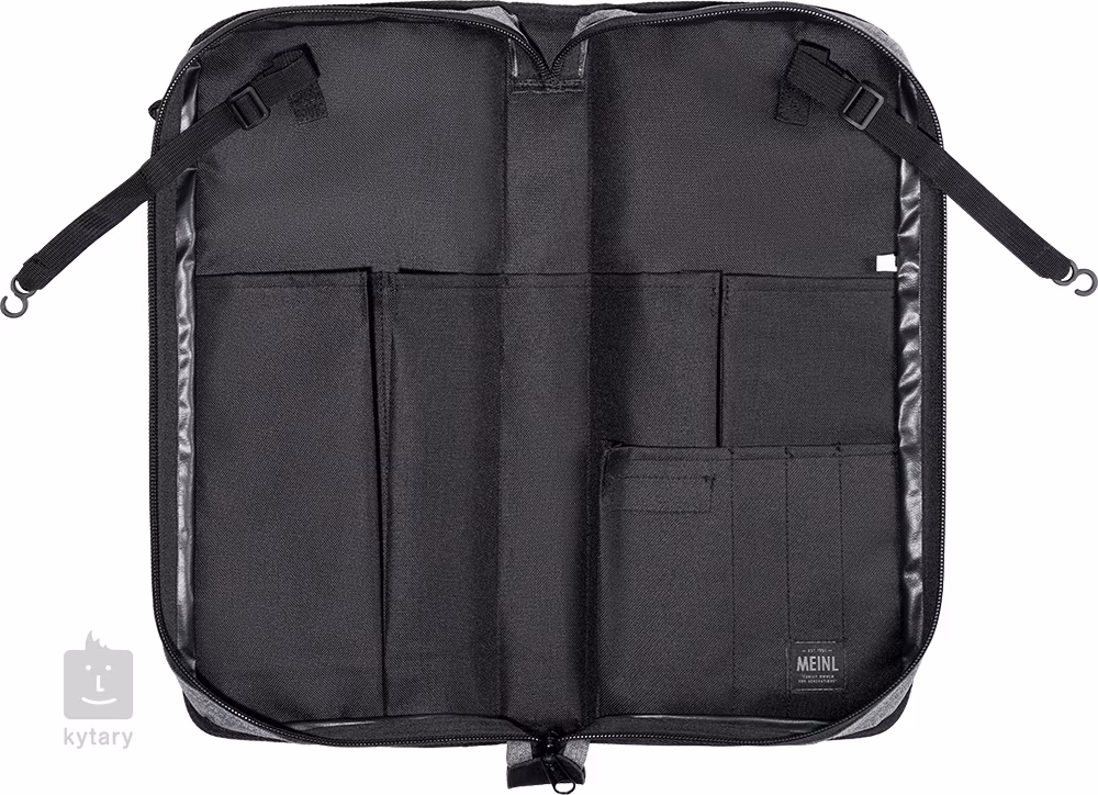 Hlavní přihrádka obsahuje pět kapes, které pojmou velké množství paliček, metliček, kartáčů nebo malletů, včetně jedné bonusové kapsy na hřbetu. Dále jsou zde čtyři menší kapsy na drobné příslušenství nebo zvukové efekty. Obal je vybaven nastavitelnými popruhy a háčky, které umožňují zavěšení na floor tom, což usnadňuje přístup k obsahu během hraní. Velká vnější kapsa se zipem je ideální pro rychlý přístup k často používaným nástrojům nebo pomůckám.