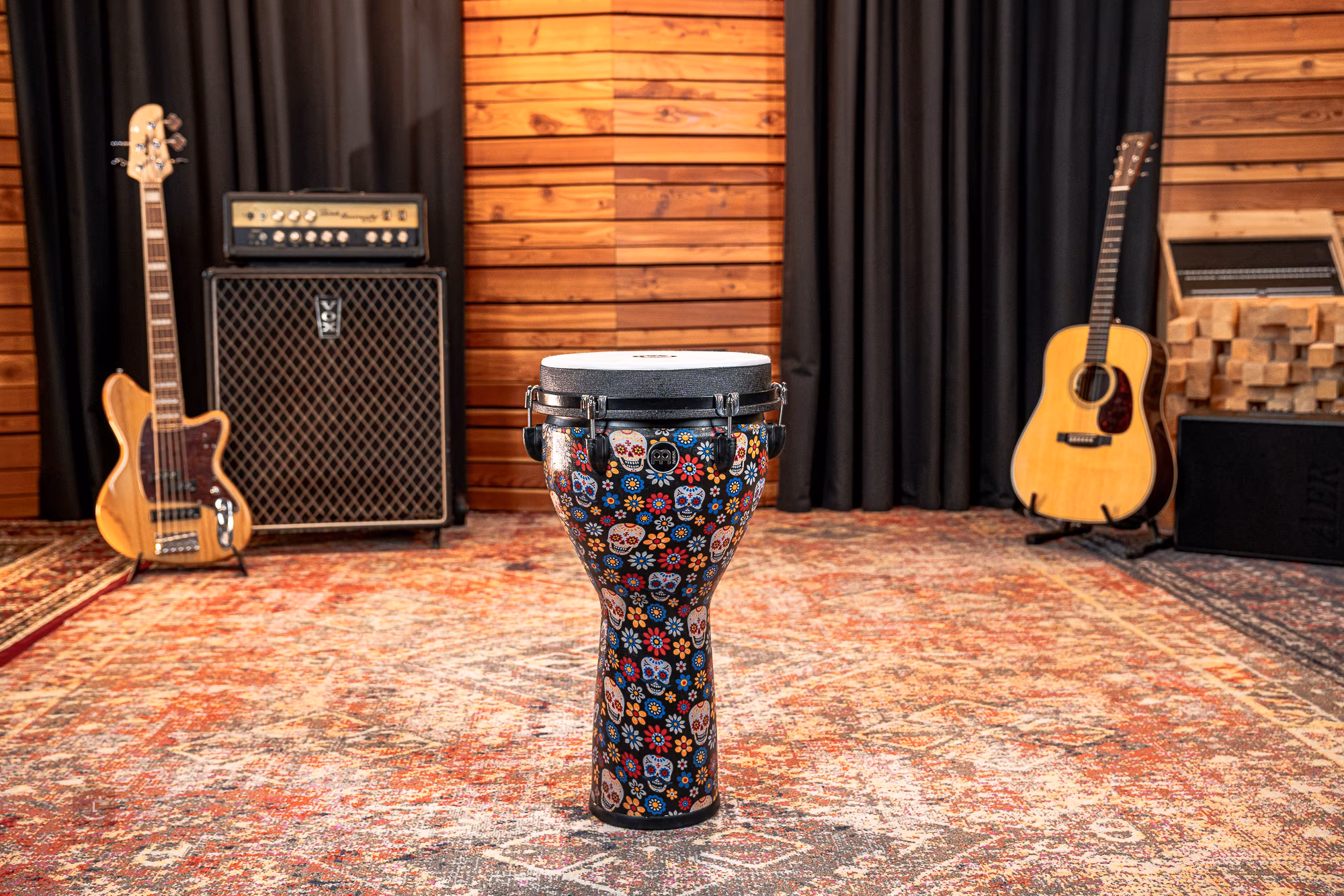 Pokud hledáte opravdu kvalitní djembe se silným zvukem, které je díky své odolnosti a nízké hmotnosti ideální pro časté cestování, jste na správné adrese. Toto djembe z řady Jumbo od firmy Meinl je vyrobeno z lehkého syntetického materiálu, který je nejen velice bytelný a plně odolný vůči povětrnostním podmínkám, ale také poskytuje nástroji velice široké zvukové možnosti. Tomu napomáhá také větší tělo, které dokáže díky své vylepšené schopnosti rezonance produkovat opravdu hutný basový zvuk, ale také ostré a soustředěné vysoké či slapové tóny. O stabilní a snadné ladění se pak stará bytelný hardware, který zároveň zajistí nástroji konzistentní zvuk. Tento model je navíc opatřen stylovou povrchovou úpravou, díky které rozhodně nezůstanete bez povšimnutí.