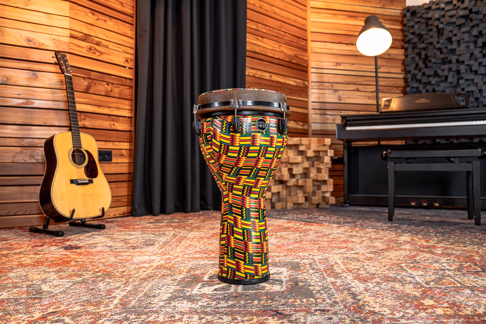 Pokud hledáte opravdu kvalitní djembe se silným zvukem, které je díky své odolnosti a nízké hmotnosti ideální pro časté cestování, jste na správné adrese. Toto djembe z řady Jumbo od firmy Meinl je vyrobeno z lehkého syntetického materiálu, který je nejen velice bytelný a plně odolný vůči povětrnostním podmínkám, ale také poskytuje nástroji velice široké zvukové možnosti. Tomu napomáhá také větší tělo, které dokáže díky své vylepšené schopnosti rezonance produkovat opravdu hutný basový zvuk, ale také ostré a soustředěné vysoké či slapové tóny. O stabilní a snadné ladění se pak stará bytelný hardware, který zároveň zajistí nástroji konzistentní zvuk. Tento model je navíc opatřen stylovou povrchovou úpravou, díky které rozhodně nezůstanete bez povšimnutí.