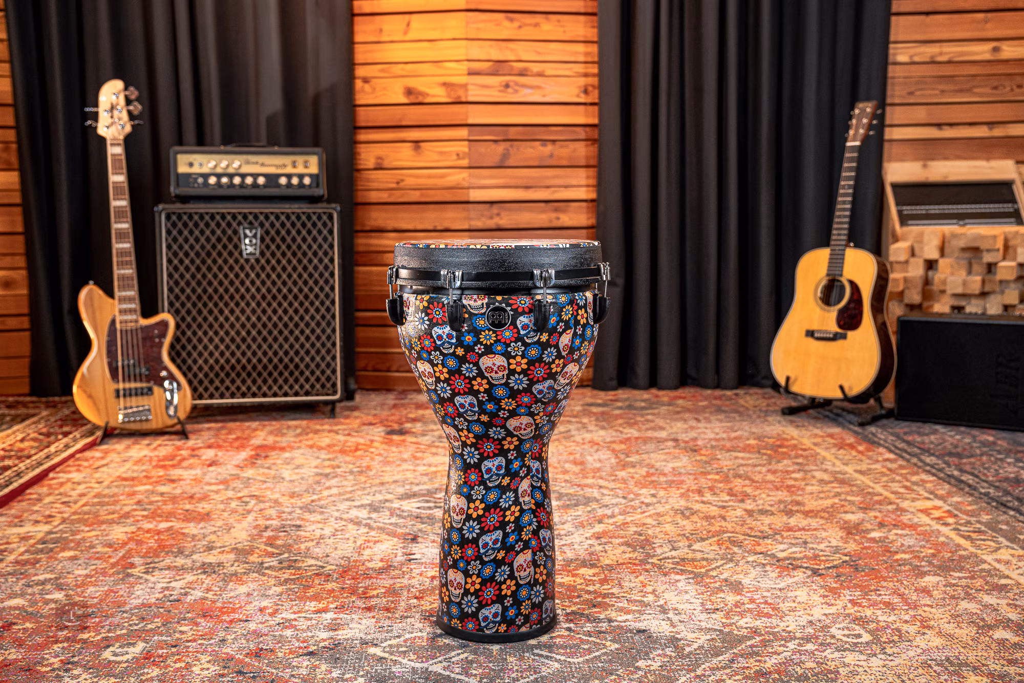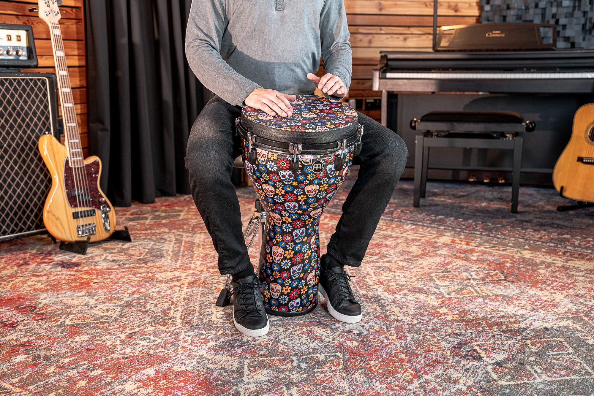 Pokud hledáte opravdu kvalitní djembe se silným zvukem, které je díky své odolnosti a nízké hmotnosti ideální pro časté cestování, jste na správné adrese. Toto djembe z řady Jumbo od firmy Meinl je vyrobeno z lehkého syntetického materiálu, který je nejen velice bytelný a plně odolný vůči povětrnostním podmínkám, ale také poskytuje nástroji velice široké zvukové možnosti. Tomu napomáhá také větší tělo, které dokáže díky své vylepšené schopnosti rezonance produkovat opravdu hutný basový zvuk, ale také ostré a soustředěné vysoké či slapové tóny. O stabilní a snadné ladění se pak stará bytelný hardware, který zároveň zajistí nástroji konzistentní zvuk. Tento model je navíc opatřen stylovou povrchovou úpravou, díky které rozhodně nezůstanete bez povšimnutí.