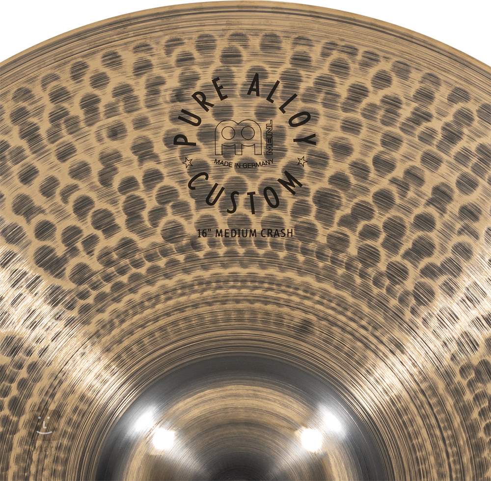 Tento crash činel od firmy Meinl je vyroben v Německu za použití těch nejmodernějších technologií. Speciální materiál Pure Alloy mu poskytuje vysokou citlivost a skvěle čitelný zvuk, který pokrývá široké frekvenční spektrum. Výsledný zvuk tak skvěle vynikne, avšak stále zůstává velice komplexní a příjemně vřelý. Společně s vyváženým sustainem a hlasitostí je tak činel velice všestranný a skvěle poslouží jak v metalu a rocku, tak i v jemnějších stylech, jako pop, fusion nebo reggae.