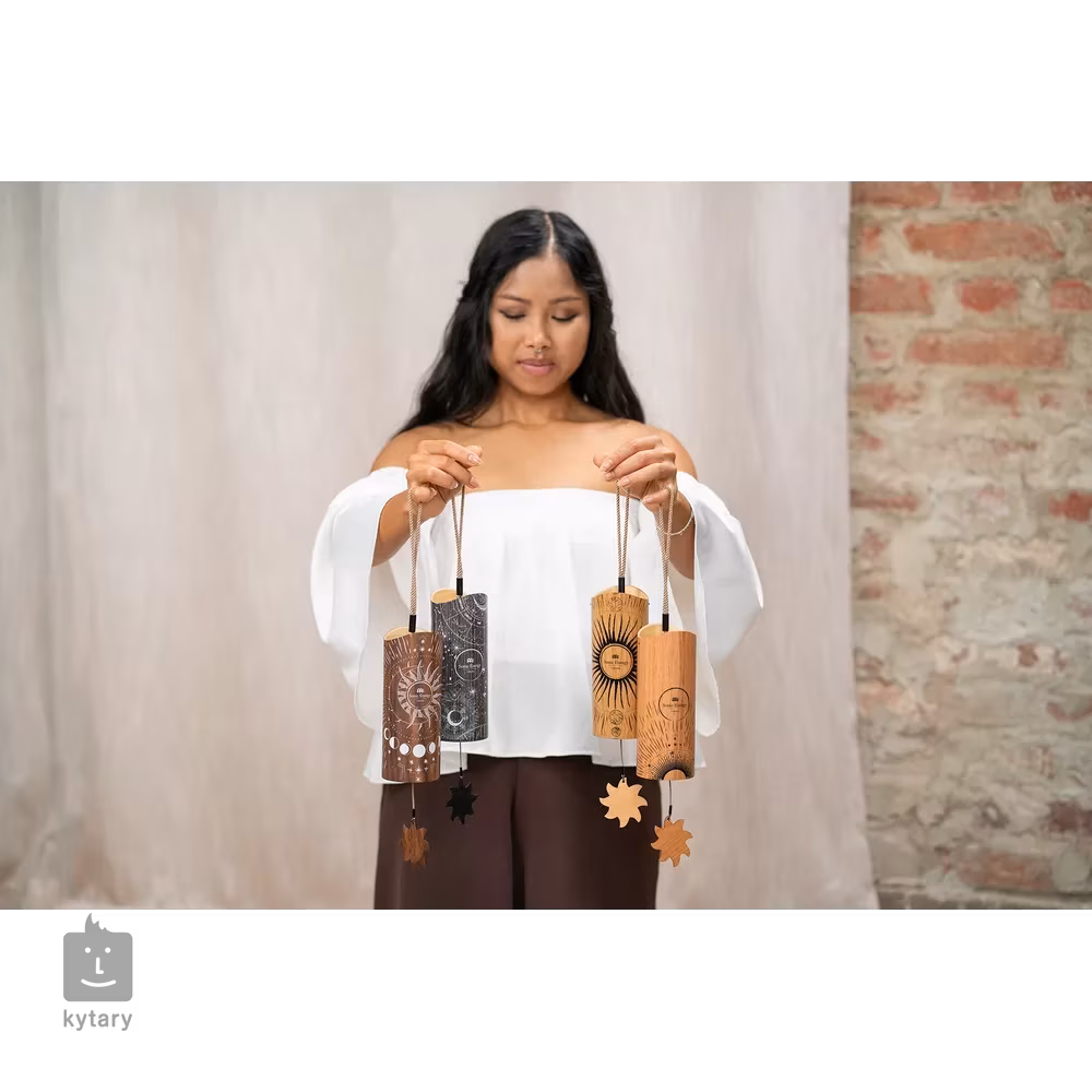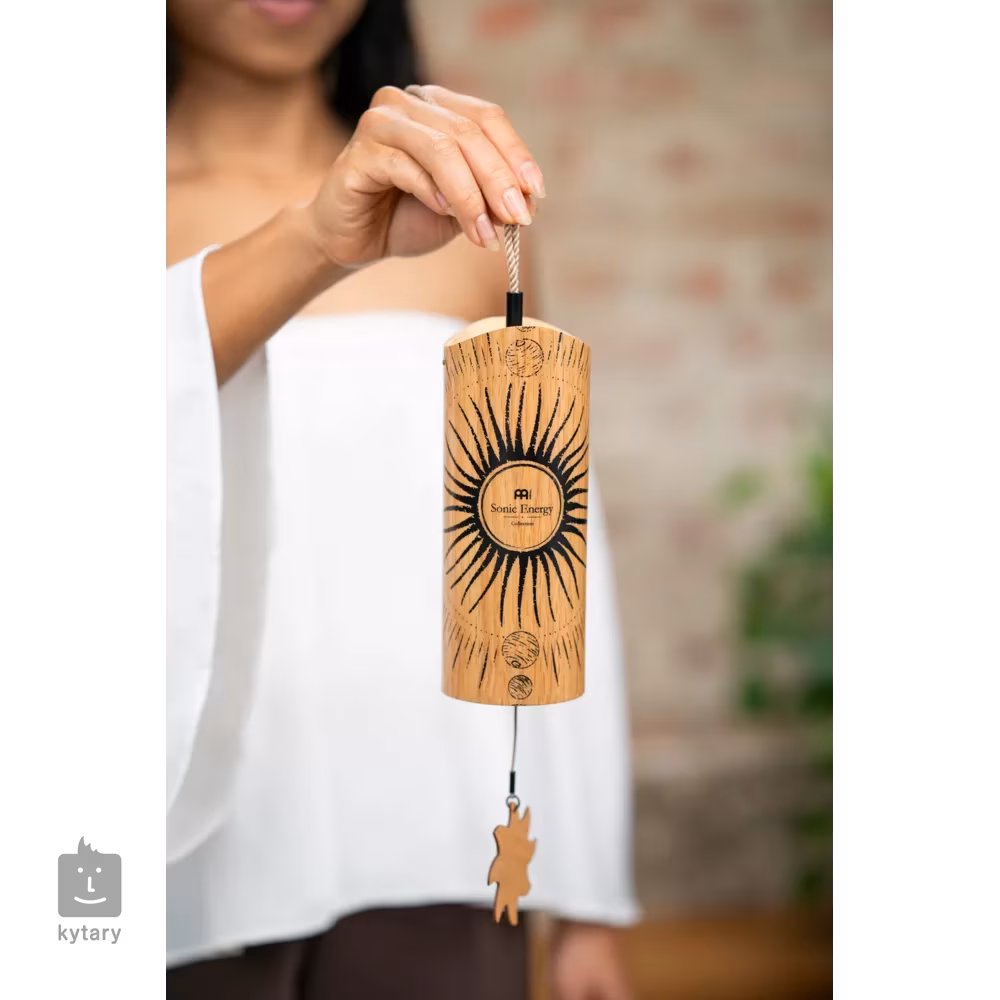 Meinl Sonic Energy Cosmic Bamboo Chimes jsou nástrojem, který produkuje jemné rezonující tóny naplňující váš prostor klidným zvukem. Jsou ideální pro meditaci, zvukové koupele a jógu nebo mohou být použity k vytvoření relaxačního prostoru doma pro chvíle zamyšlení. Stačí držet šňůru a jemně zatřást chimes, čímž se aktivuje jejich zvuk. Uvnitř se nachází kyvadlo a skupina kovových drátů laděných na konkrétní tóny. Tóny lze snadno upravit výměnou kyvadel, které jsou součástí balení: akrylovým (tvrdým) a dřevěným (měkkým). Akrylové kyvadlo se zasune do spodní části chimes a připne na háček na dřevěném příčném prutu. Stačí potáhnout tkaničkou a zvednout ji, abyste zahráli na chimes. Tóny jsou A4/a' 432 Hz; E5, F#5, G#5, C#6, E6, G#6, G#4, C#5.