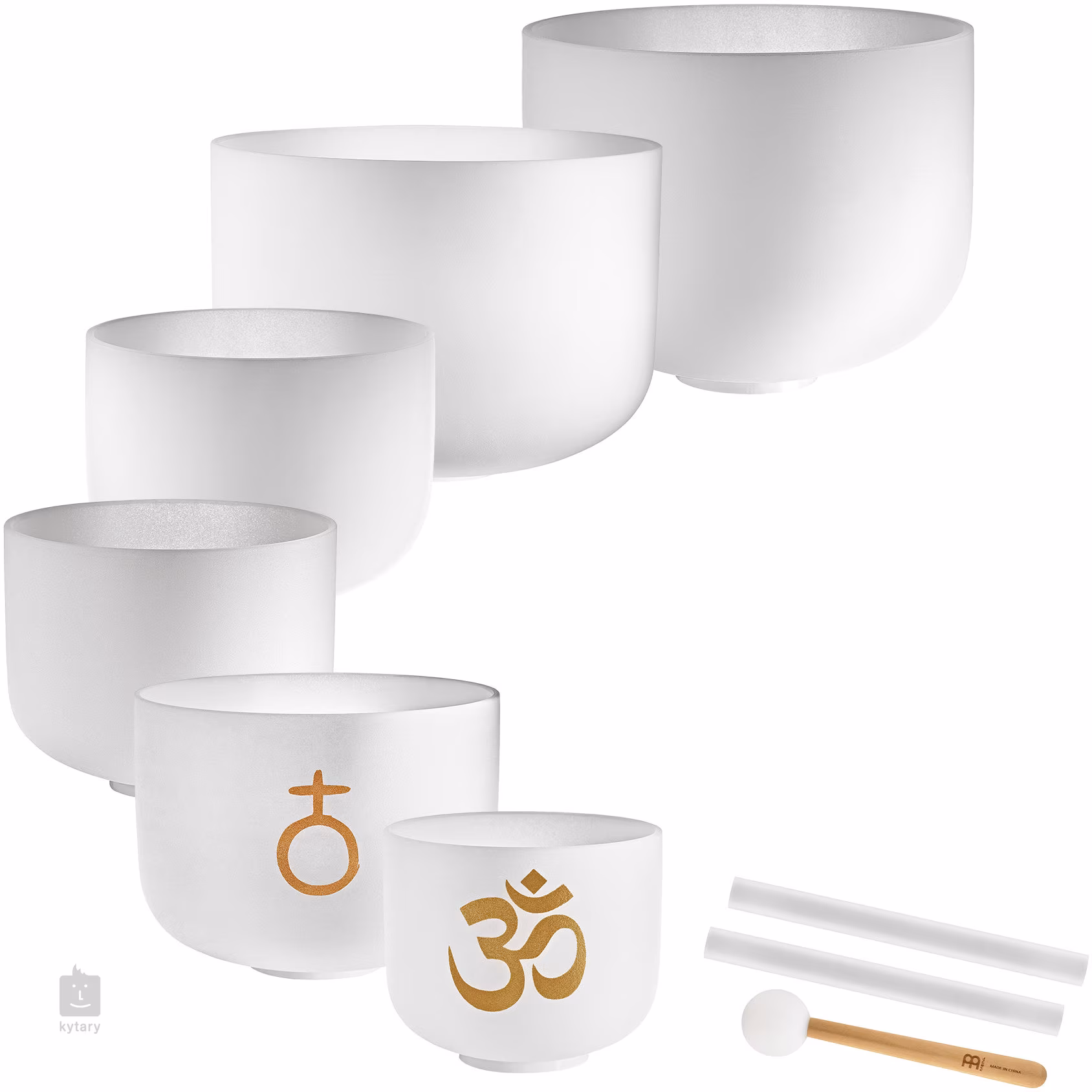 Meinl Sonic Energy CSBSETOM6 White-Frosted Crystal Singing Bowls – 6dílný Om Set je sada šesti bílých matných křišťálových zpívajících mís vyrobených z vysoce čistého křemene. Díky preciznímu zpracování vytvářejí dlouhotrvající, kulovitě se rozvíjející tón, který se při jemném poklepání nebo rozeznívání třením přirozeně šíří prostorem a naplňuje jej harmonickou, vibračně bohatou energií.