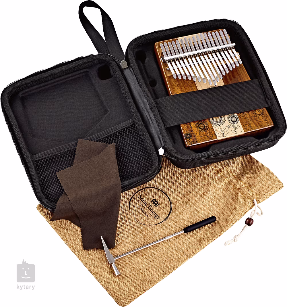 Kalimba je unikátní melodický nástroj, který přidá do vaší tvorby nebo live performance jedinečný a nezaměnitelný prvek. Pochází původně z Afriky, kde se se používá už po dlouhá staletí a může sloužit k doprovodné nebo sólové hře. Tento model je vyroben z kombinace kvalitních a skvěle rezonujících dřev javoru a akácie. Přirozenou akustiku dřeva navíc doplňuje ozvučnicový otvor, který zvuku nástroje přidává na vřelosti a prodlužuje sustain. Tento model disponuje až sedmnácti „klávesami“ a díky svému ladění krásně zapadne prakticky v jakékoliv situaci. Součástí balení je také přepravní obal, čistící hadřík a kladívko, pomocí kterého můžete nástroj v případě potřeby doladit.