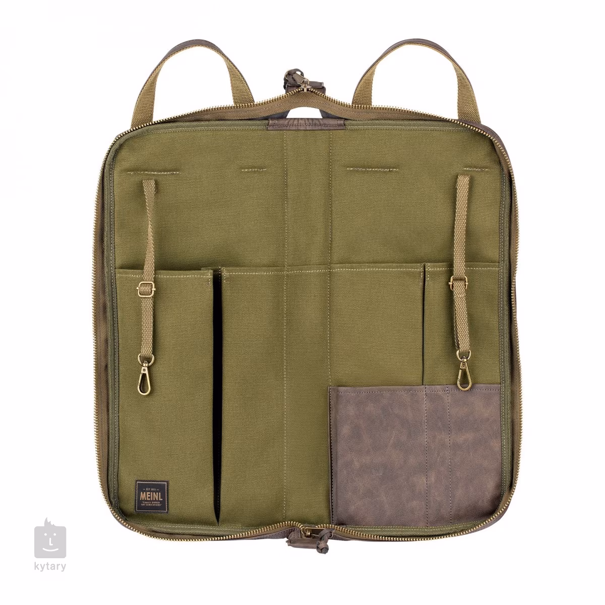Obal Meinl Vintage Hyde Stick Bag kombinuje odolnost s klasickým vzhledem. Jeho vnější část je vyrobena z velmi odolné koženky, která odolá náročným turné, zatímco interiér z bavlněného plátna nabízí spoustu prostoru pro organizaci vašich paliček. V hlavním oddílu najdete až osm kapes, včetně kapes na příslušenství nebo zvukové efekty. Má také velkou vnější kapsu pro rychlý přístup, kterou můžete zabezpečit. Díky nastavitelnému/odnímatelnému ramennímu popruhu a pevným rukojetím ho můžete pohodlně přenášet na koncerty nebo do studia. Dostat se do obalu je snadné díky velkým zipovým tahům s dlouhými šňůrkami. Meinl Vintage Hyde Stick Bag nabízí nadčasový a praktický styl pro každého bubeníka na cestách.