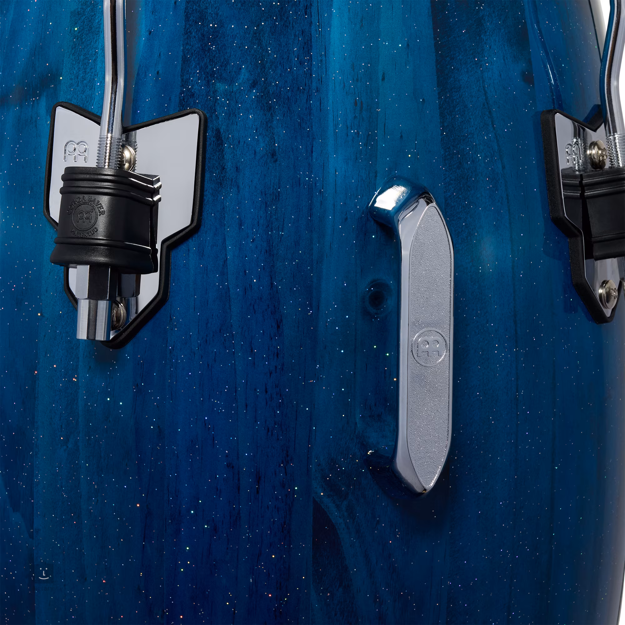O hluboký a artikulovaný zvuk s kontrolovaným atakem se stará prémiová blána REMO® Black Calfskin Skyndeep®. Stabilní a přesné ladění za všech okolností zaručuje pochromovaný hardware, který zahrnuje 10mm silné ladicí šrouby a 4mm zaoblené obruče SSR-Rims. Součástí balení je i bohaté příslušenství, které obsahuje Meinl Conga Saver pro ochranu korpusu, praktickou rukojeť, tlumicí podložky Soundpads, pouzdro na příslušenství, ladicí klíč ve tvaru L a olej pro údržbu.
