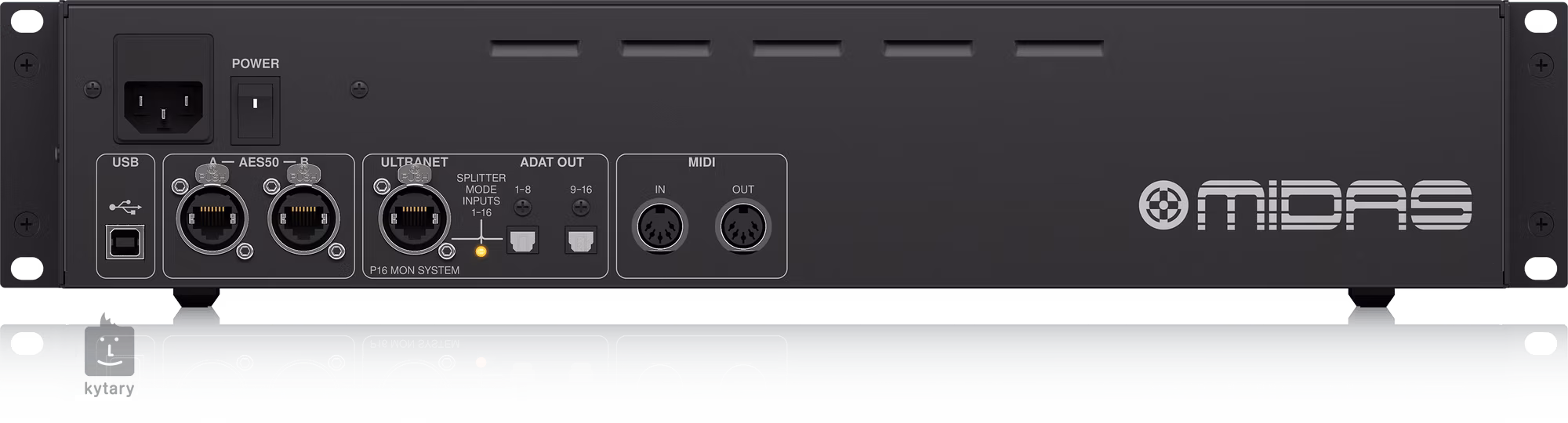Digitální stagebox Midas DL16 představuje efektivní řešení propojení veškerých zařízení na stage s digitálními konzolemi - nabízí 16 mikrofonních předzesilovačů s přepínatelným +48V fantomovým napájením, 8 symetrických analogových XLR výstupů a ke štěstí stačí jediný kabel Cat 5e (kabeláž až do délky 100 metrů). Digitální stagebox dále nabízí MIDI I/O, USB pro firmware update, AES50 síť (Klark Teknik) a AES50 porty, Ultranet port, optický výstup ADAT a sluchátkový výstup pro monitoring.