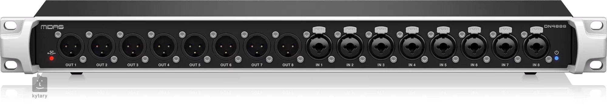 Midas DN4888 je StageConnect box s osmi symetrickými linkovými XLR vstupy a osmi symetrickými XLR výstupy, který můžete použít jako analogový I/O box pro další StageConnect zařízení, s Turbosound iQ reproduktory nebo Behringer WING a Ultranet přijímači (P16).