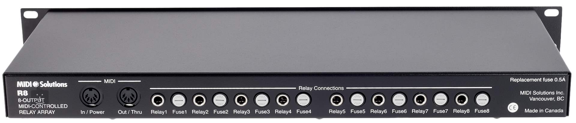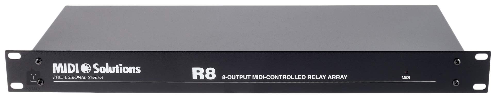 Univerzální MIDI převodník s osmi Relay vstupy vhodný pro ultra rychlý přenos MIDI signálu s nulovým zpožděním (jen 2 ms). R8 je napájen prostřednictvím MIDI. Tento převodník je vhodný pro MIDI klávesy, sekvencéry a vícekanálové kytarové aparáty, kdy můžete prostřednictvím speciálního softwaru měnit jejich natavení příkazem Closed/Open. Relay kontakty jsou dimenzovány na 500 mA.
