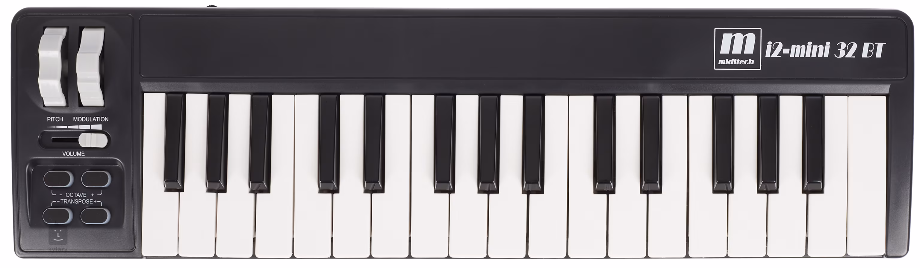 Miditech I2-Mini 32 BT je šikovná MIDI klaviatura s bezdrátovým Bluetooth připojením, pomocí níž můžete ovládat hudební software v počítači nebo ve vašem telefonu. Díky možnosti napájení pomocí dvou AA baterií se navíc obejdete úplně bez kabelů a snadno si tak vytvoříte malé studio naprosto kdekoliv.