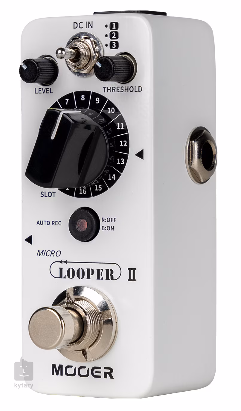 Samozřejmostí je neomezené vrstvení smyček a intuitivní ovládání s pomocí jediného footswitche a dvou potenciometrů – footswitchem můžete ovládat standardní funkce looperu (play, record, dub, stop), knoflík Level slouží pro nastavení hlasitosti smyčky a Threshold je přidružený k funkci Auto Rec, která automaticky začne nahrávat ve chvíli, kdy detekuje vstupní signál určité úrovně. Právě tuto úroveň, neboli práh detekce, nastavíte knoflíkem Threshold. K napájení zařízení je zapotřebí 9V adaptér (není součástí balení).