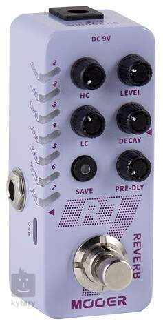 R7 Digital Reverb je kompaktní kytarový reverb efekt z nové řady Micro čínské značky Mooer. V malém těle ukrývá sedm druhů digitálního reverbu – konkrétně typy Room, Hall, Church, Cave, Plate, Spring a Mod.