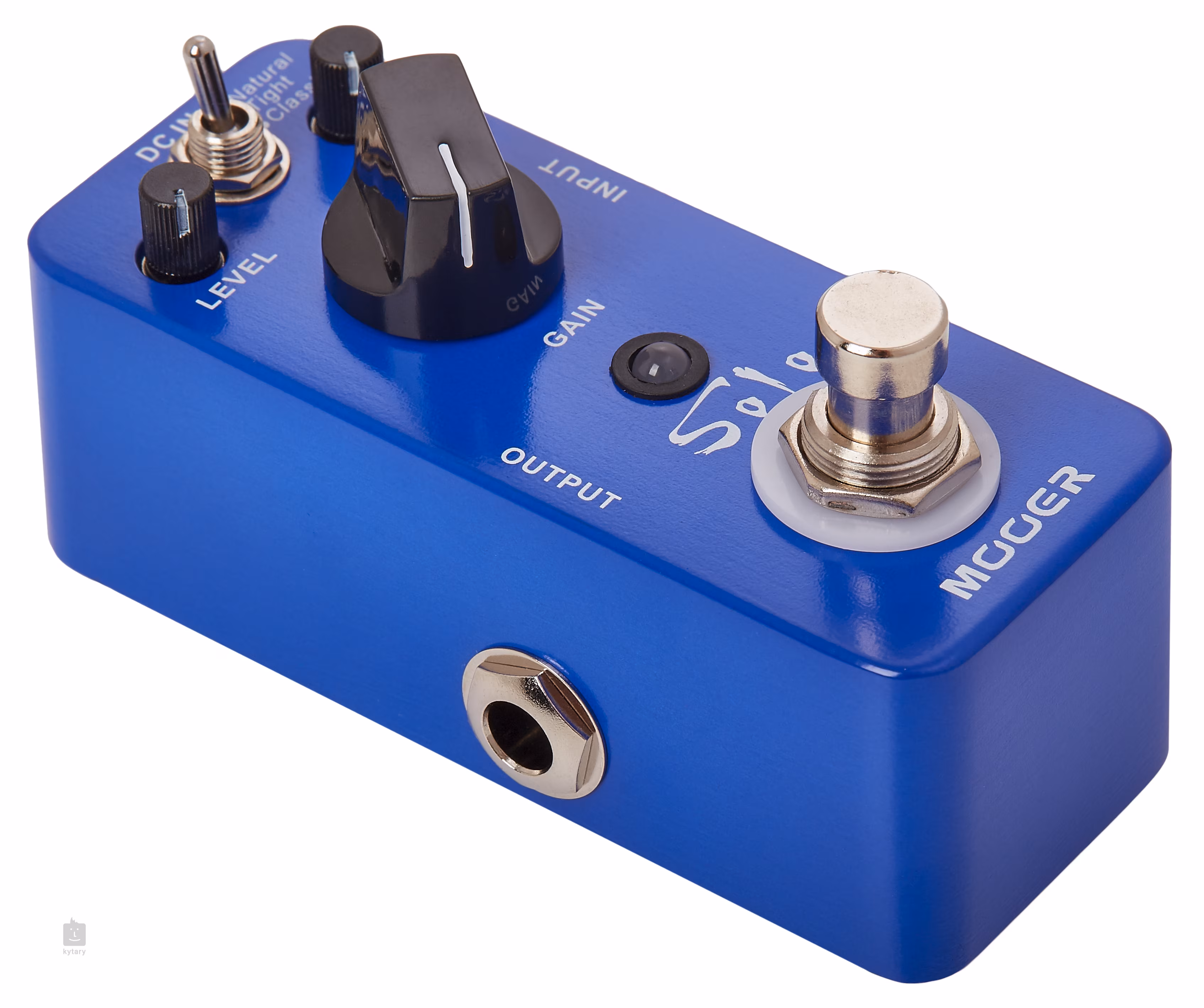 Solo je kompaktní kytarový distortion pedál z řady Micro čínské značky Mooer. Jedná se o tradiční distortion s jednoduchým ovládání a třemi zvukovými režimy – Natural s přirozeným zkreslením a dobrou dynamickou odezvou, Tight s větším rock/metalovým gainem a průraznými středy a Classic s vintage zabarvením gainu a artikulovaným zvukem. Představuje ideálního pomocíka k dosažení plného šťavnatého zvuku kytarových sól.