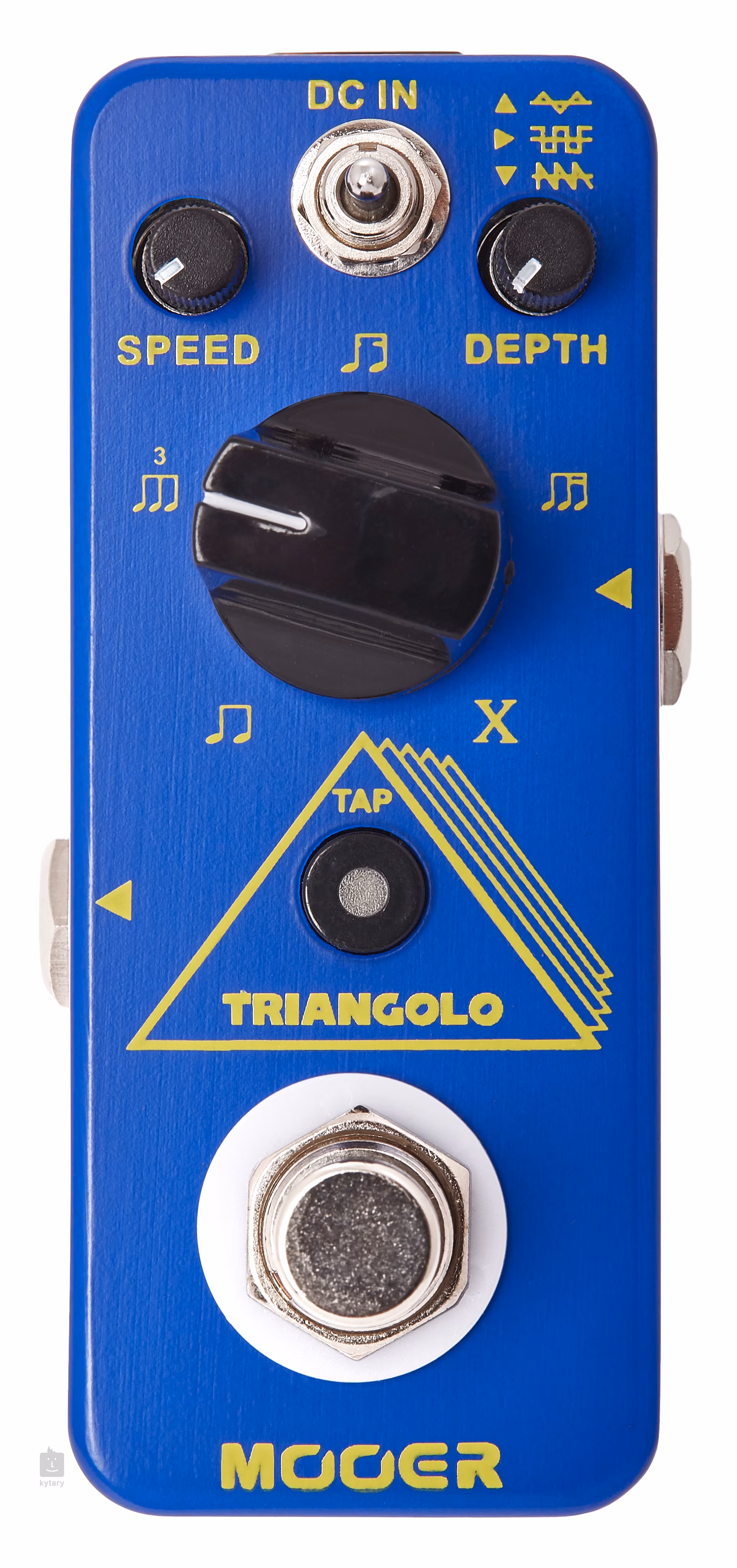 Triangolo je kompaktní pedálový efekt typu tremolo z řady Micro čínské značky Mooer. Jedná se o všestranné digitální tremolo s jednoduchým ovládáním, funkcí tap tempo a třemi typy (režimy) efektů s různými zvukovými křivkami (Triangular/Square/Sawtooth). Přepínáním mezi jednotlivými typy zcela změníte attack a release tremolo efektu. Ovladači Speed a Depth určíte rychlost a intenzitu průběhu efektové modulace. Funkci tap tempo aktivujete sešlápnutím a podržením footswitche, velký otočný ovladač nabízí pět různých rytmických algoritmů tremolo efektu.