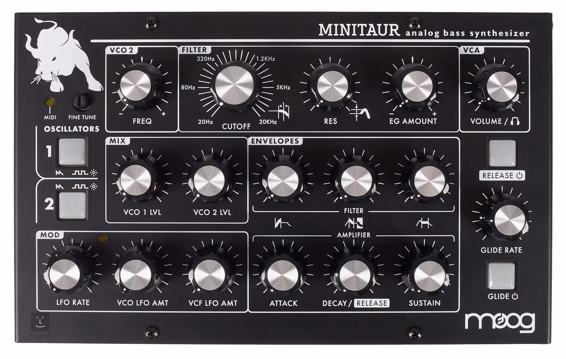 Minitaur je výkonný a kompaktní analogový basový syntezátor.
