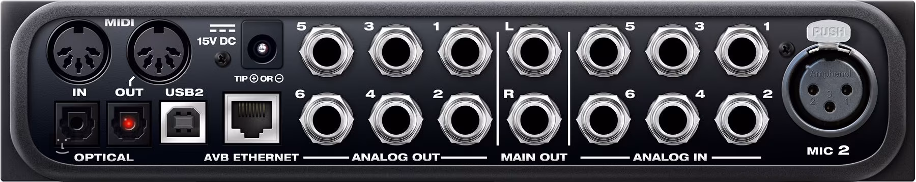 UltraLite AVB nabízí technologii ESS Sabre 32 Ultra DAC pro vynikající analogový zvuk o kvalitě až 192 kHz. Přední panel obsahuje dva nástrojové vstupy, mikrofonní vstup, ovladače pro dva mikrofonní vstupy s fantomovým napájením, maximální přehled o vstupní a výstupní hlasitosti potom získáte prostřednictvím rozsáhlého LED displeje. Dále zde naleznete sluchátkový výstup se separátním ovladačem Volume. Zadní panel nabízí flexibilní konektivitu v podobě mikrofonního vstupu, šesti analogových vstupů, šesti analogových výstupů, dvou stereo linkových výstupů, MIDI In/Out konektorů, AVB Ethernet, ADAT pro rozšíření o osm digitálních In/Out kanálů a USB-B portu pro připojení do PC nebo laptopu. Součástí balení je softwarová sada od MOTU pro Mac a PC.