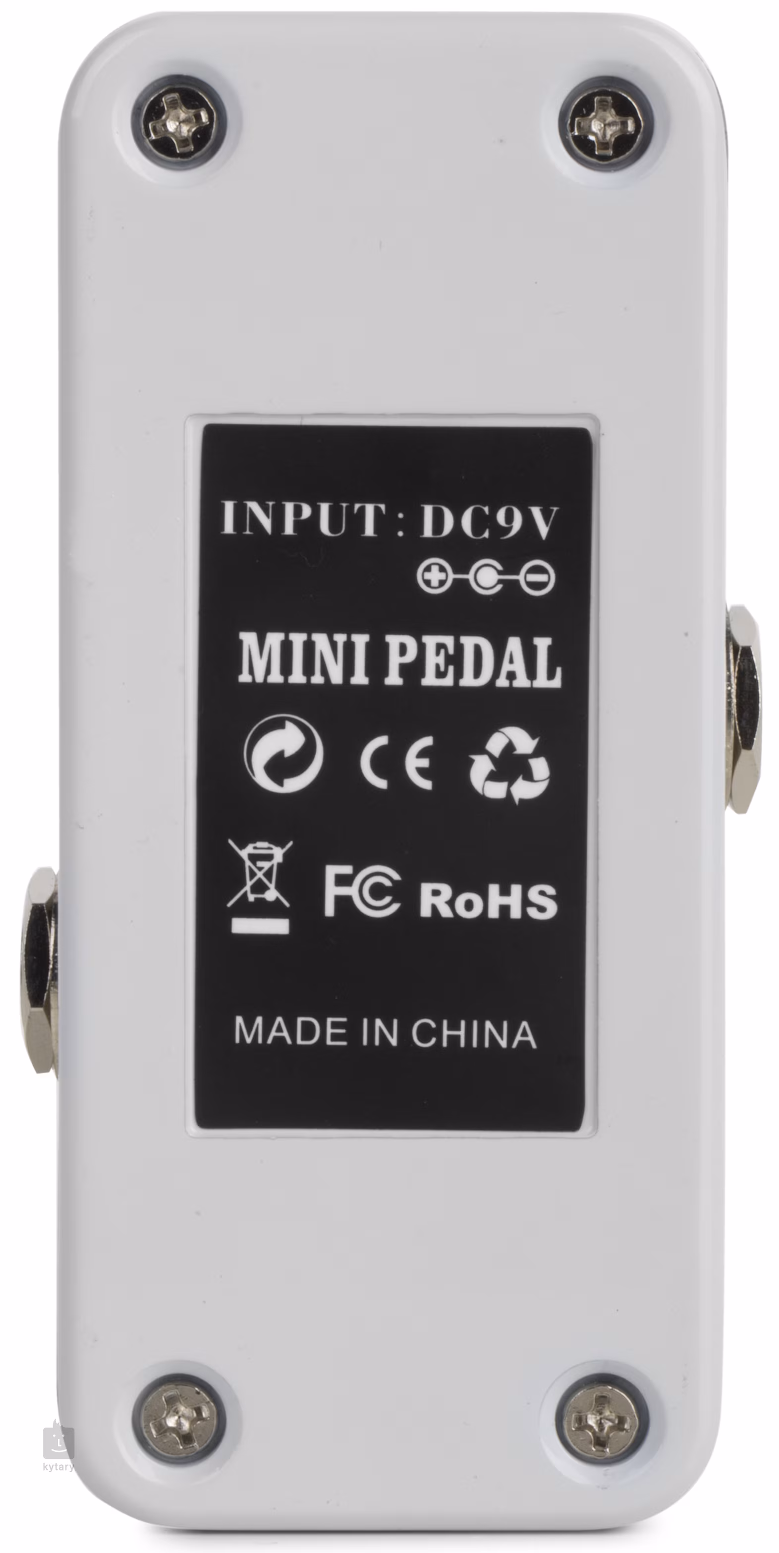 Veškerá elektronika je zasazena v hliníkovém šasi. Krabička je zapojena jako true bypass. K napájení slouží 9V adaptér.