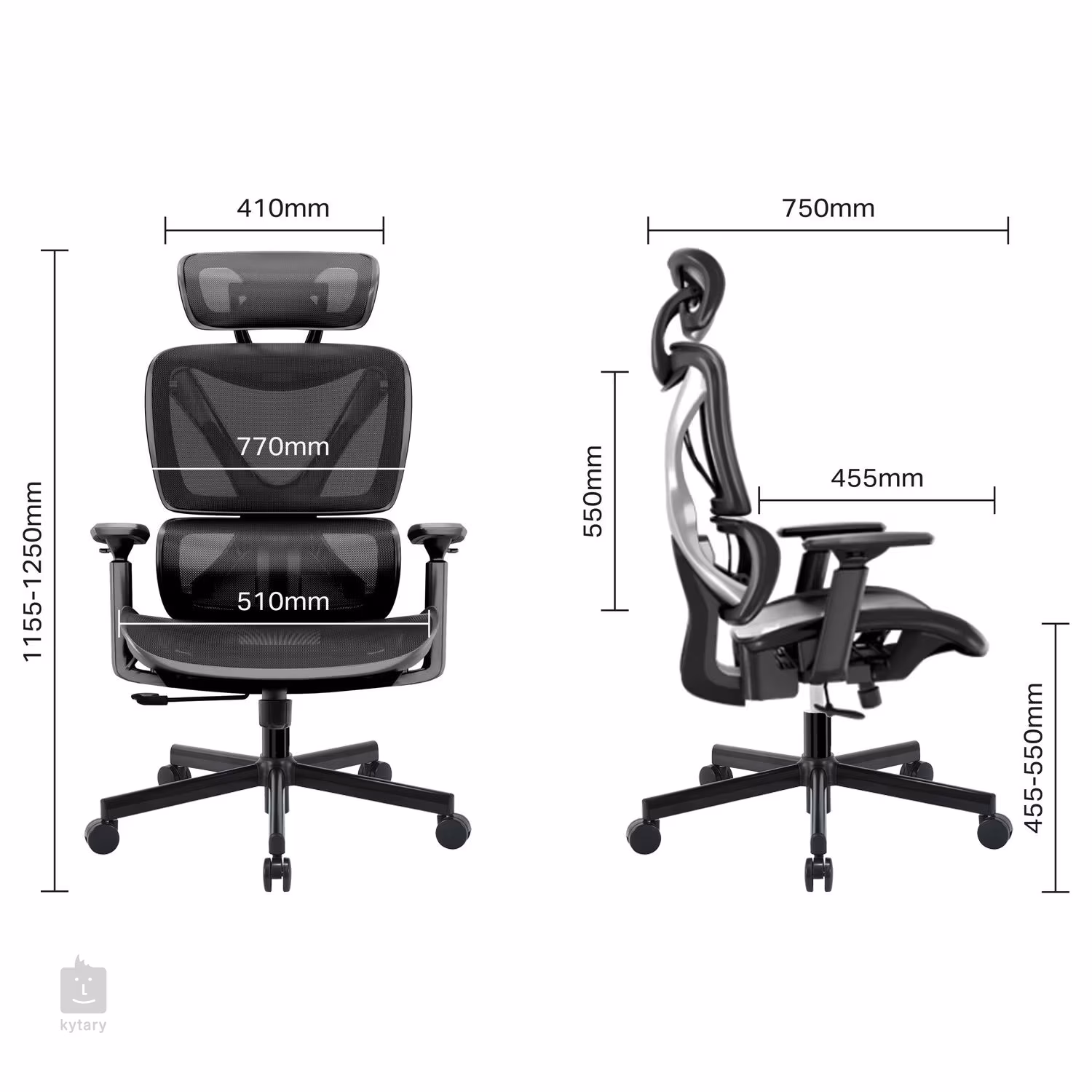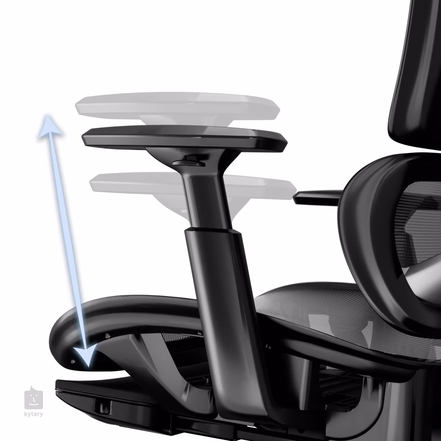 Výškově nastavitelné područky: měkké a pohodlné područky lze snadno nastavit, aby odpovídaly vašemu preferovanému držení rukou během práce.