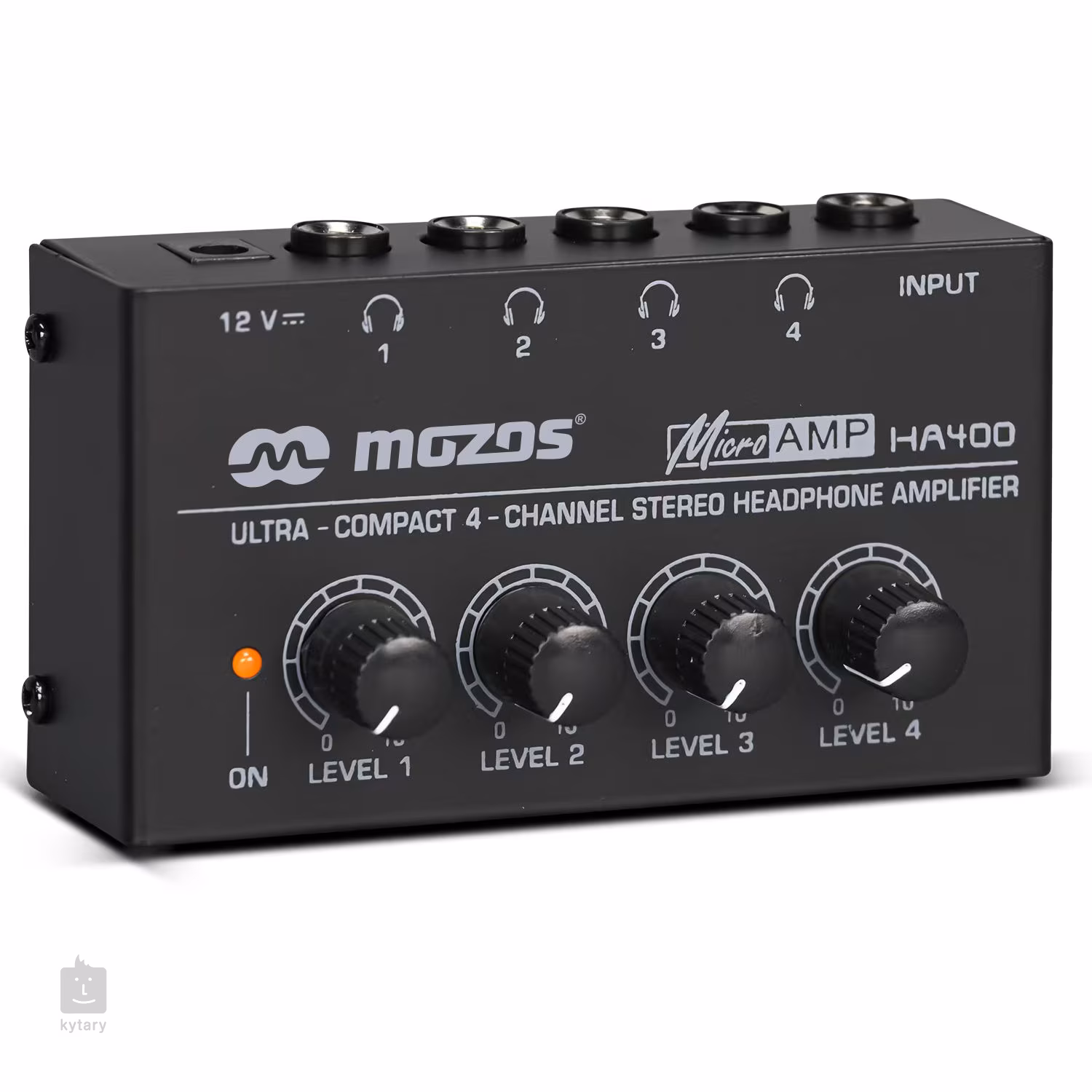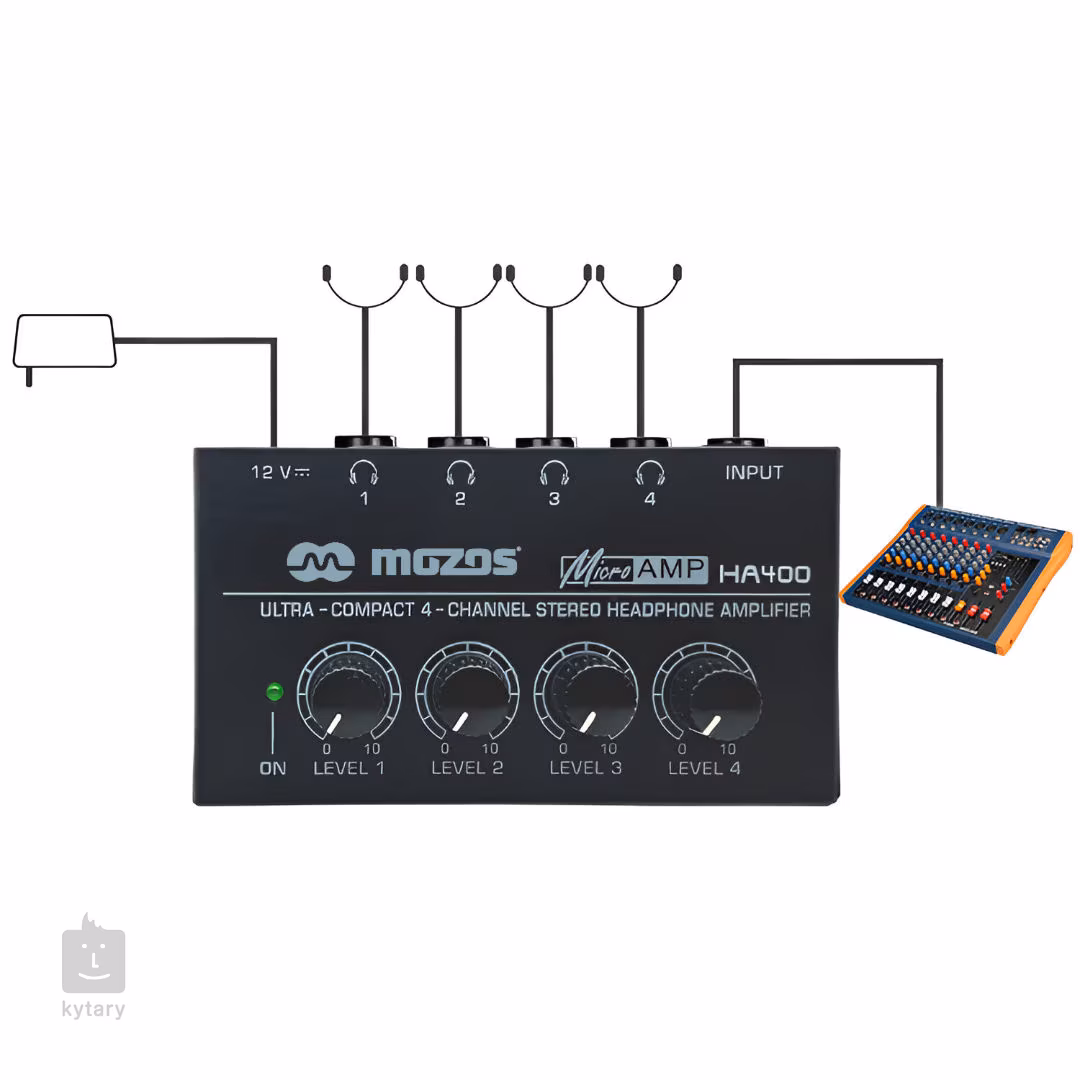Mozos HA-400 je čtyřkanálový sluchátkový zesilovač, který vám umožní vést zvukový signál do čtyř párů sluchátek. Perfektní volba pro skupinovou studiovou práci, tiché cvičení s kapelou a celou řadu dalších využití. Každý výstup disponuje vlastním ovládáním hlasitosti pro individuální přizpůsobení. Zařízení podporuje celou řadu sluchátek s impedancí od 10 do 600 Ω, takže jej využijete s jednoduchými osobními špunty i profesionálními studiovými sluchátky. Zvuk dosahuje vysoké kvality v celém frekvenčním spektru (20 Hz – 20 kHz) a napomáhá tak zachovat plnou zvukovou integritu. Napájení probíhá pomocí 12V DC adaptéru, který je součástí balení. HA-400 je zkonstruován z odolného kovového materiálu, který mu zajišťuje vysokou odolnost.