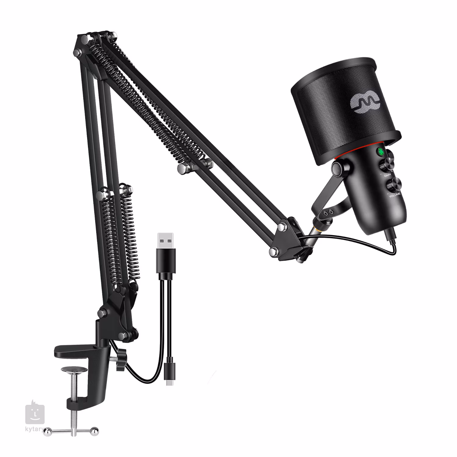 Vysoce kvalitní sestava vhodná pro vytvoření domácího nahrávacího studia obsahující USB kondenzátorový mikrofon s velmi flexibilním využitím vhodný pro gamery, streamování, natáčení vlogů, podcastů a prezentací. Robustní šasi je vyrobeno z kvalitních materiálů a chrání mikrofonní kapsli s kardioidní směrovou charakteristikou. Mikrofon nabízí sluchátkový výstup (3,5 mm jack TRS) pro monitoring, dva ovladače (Volume, Gain) pro nastavení citlivosti mikrofonu a tlačítko Mute. Mikrofon stačí připojit k vašemu PC či laptopu a začít nahrávat, kvalita záznamu je 24bit/192 kHz.