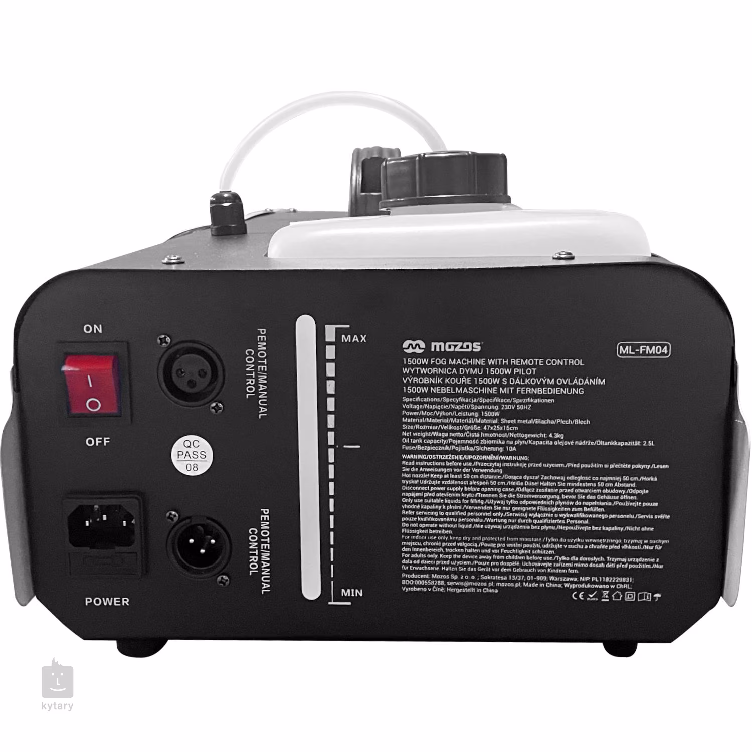 Mozos ML-FM04 je profesionální výrobník mlhy, který vám pomůže oživit jakýkoliv koncert, oslavu, focení či natáčení nebo jinou speciální akci. S objemem 2,5 litru a výkonem 1500 W dokáže rychle zaplnit prostory o velikosti 30 až 50 m³. Při prvotním spuštění potřebuje 3 až 5 minut na zahřátí, poté mu stačí pouhá minuta, takže se nemusíte obávat dlouhého čekání na další várku mlhy. Zařízení lze ovládat pomocí kabelového připojení i dálkově. Tělo mlhovače je vyrobeno z pevného plechového materiálu, který zajišťuje dlouhou životnost a odolnost proti mechanickému poškození. Zároveň je relativně lehký, což z přístroje Mozos ML-FM04 dělá ideálního pomocníka na cestách. Jeho celková váha je 4,3 kg.