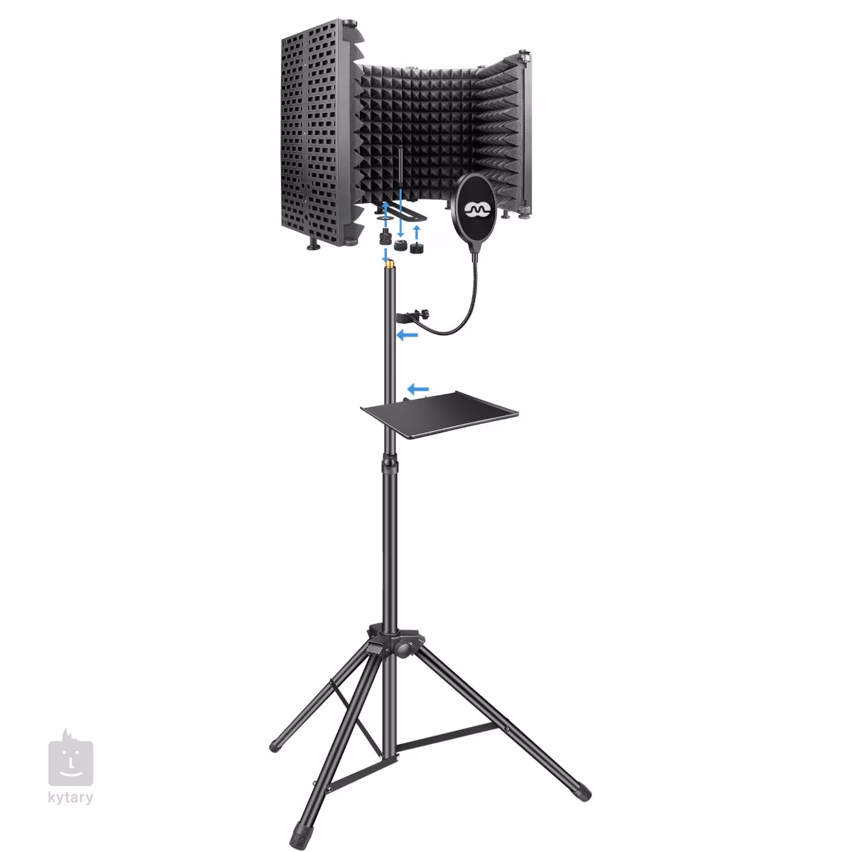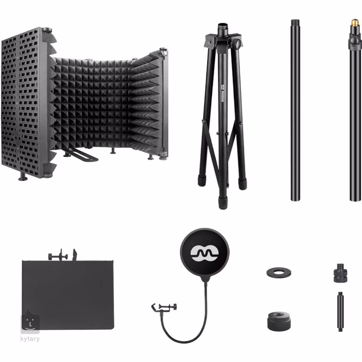 Univerzální sada tvořená akustickým paravanem, výškově nastavitelným stojanem, pop filtrem a odkládací plochou pro mixpult, sluchátka, laptop, nebo USB zvukové rozhraní.