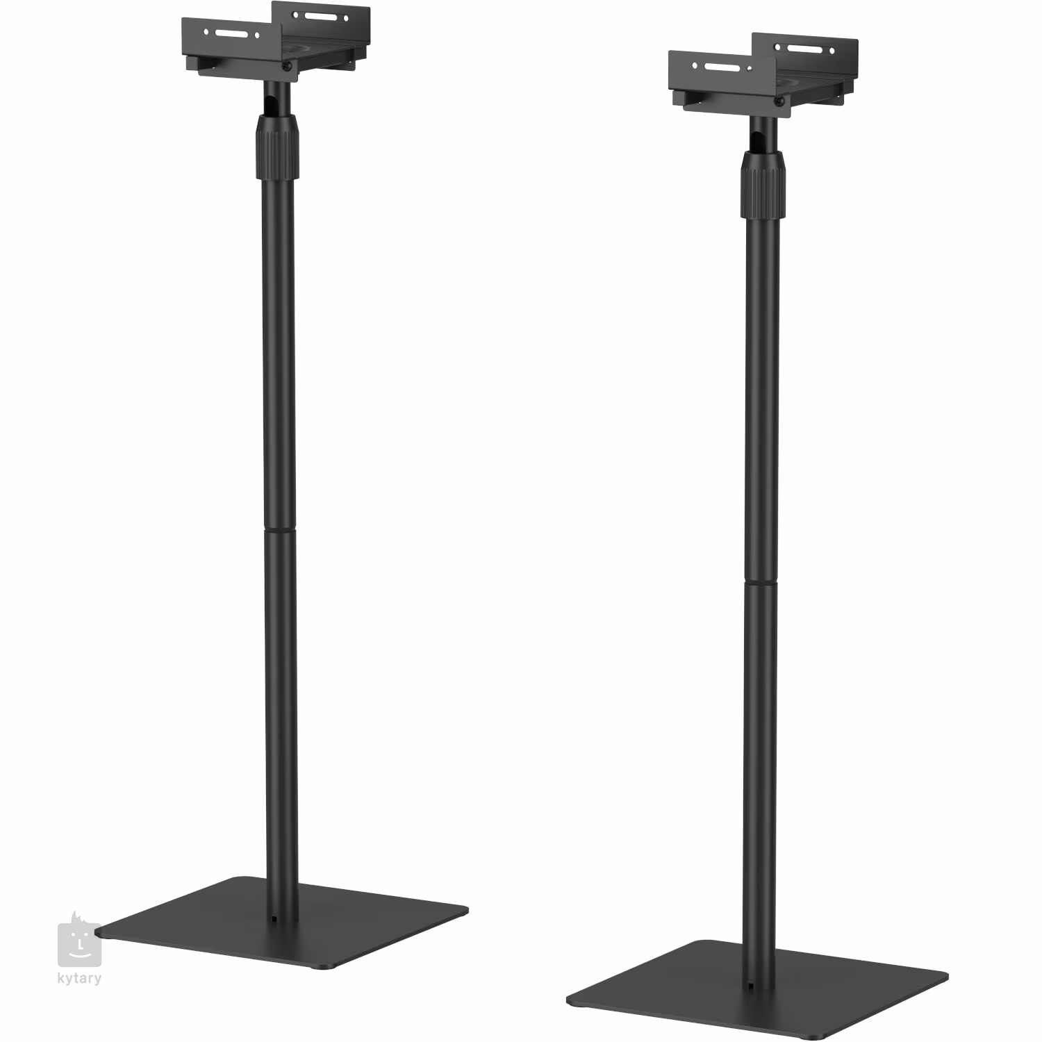 Tato sada dvou teleskopických stojanů kombinuje funkčnost, odolnost i moderní design. Nastavitelná platforma byla navržena s ohledem na maximální flexibilitu a je vybavena rozšiřitelnými svorkami a protiskluzovými podložkami na obou stranách, což zaručuje stabilní a bezpečné umístění reproduktorů různých velikostí i značek (kompatibilní se šířkami monitorů 124 – 285 mm). Základnu lze navíc otáčet o 360° a naklápět o 10° vertikálně i horizontálně, takže můžete najít dokonalý poslechový "sweet spot".