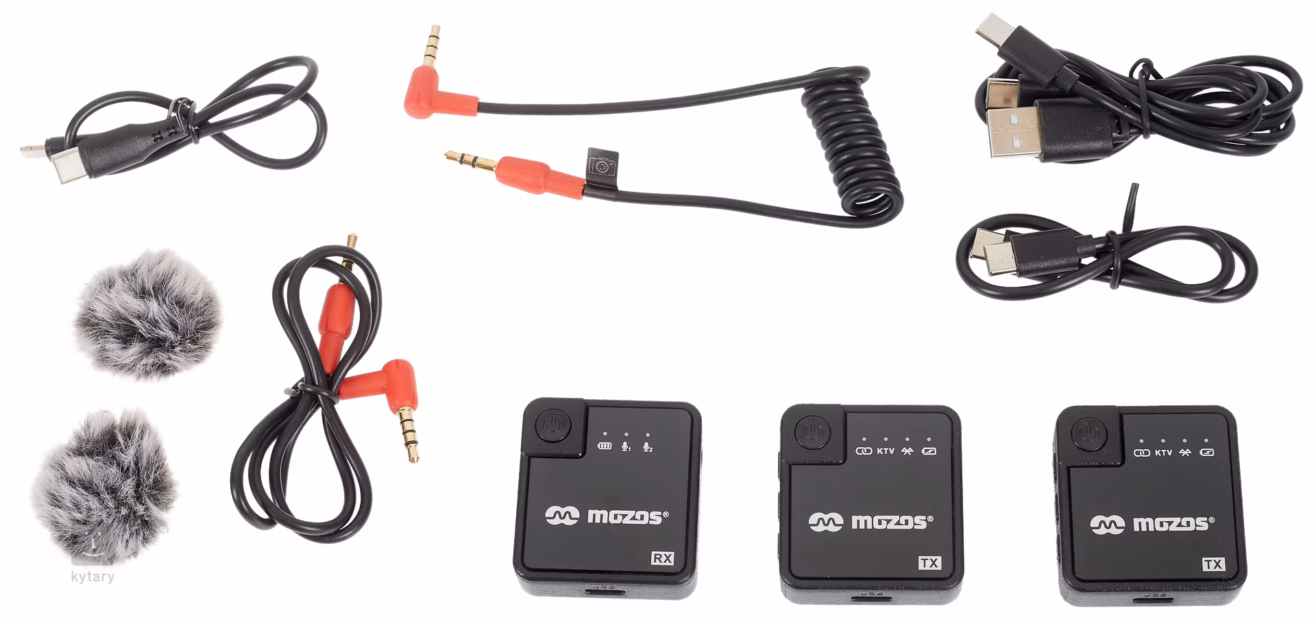 Bezdrátový reportážní set (dva vysílače a přijímač) s USB-C kompatibilitou, DSLR (3.5mm jack), kvalitním zvukem, vysokou citlivostí, vestavěným DSP čipem, dosahem až 40 metrů a napájením pomocí vestavěné baterie (300mah). Kompatibilita se systémy Android, iOS a podpora DSLR SLR. Součástí balení je obal a protivětrný kryt.