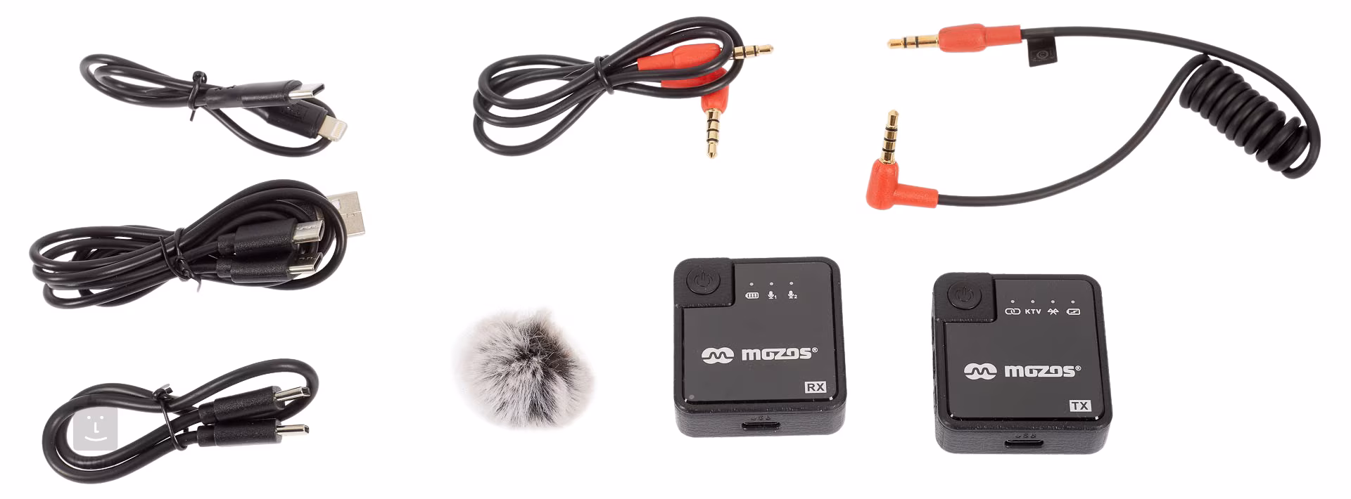 Bezdrátový reportážní set s USB-C kompatibilitou, DSLR (3.5mm jack), kvalitním zvukem, vysokou citlivostí, vestavěným DSP čipem, dosahem až 40 metrů a napájením pomocí vestavěné baterie (300mah). Kompatibilita se systémy Android, iOS a podpora DSLR SLR. Součástí balení je obal a protivětrný kryt.